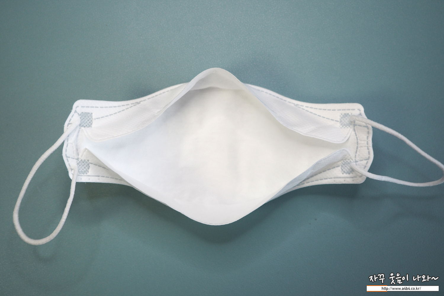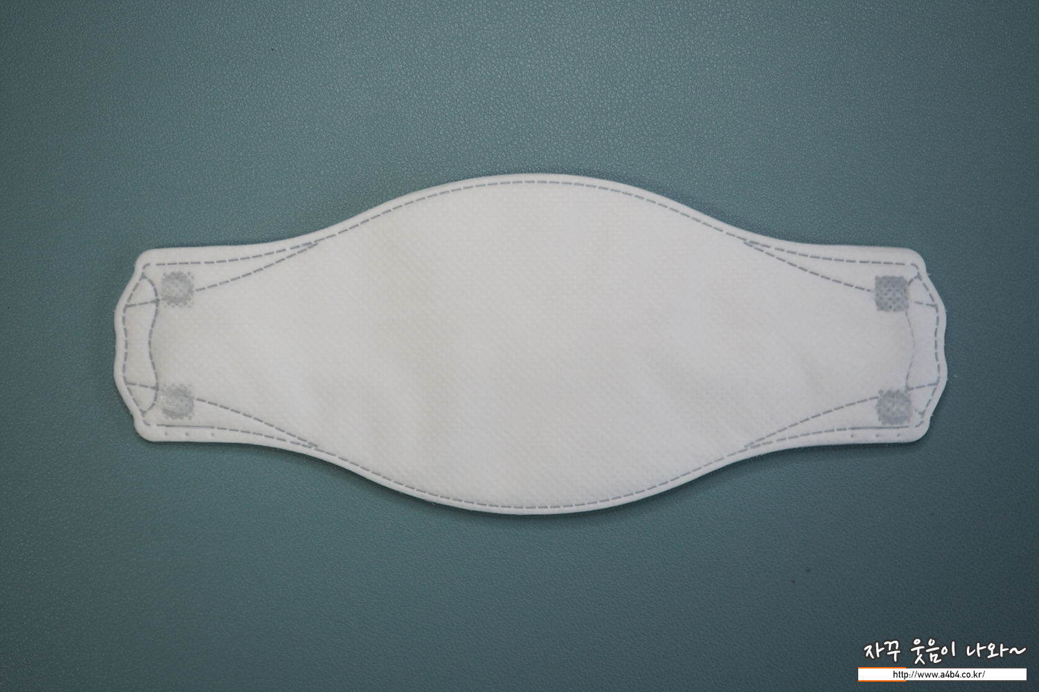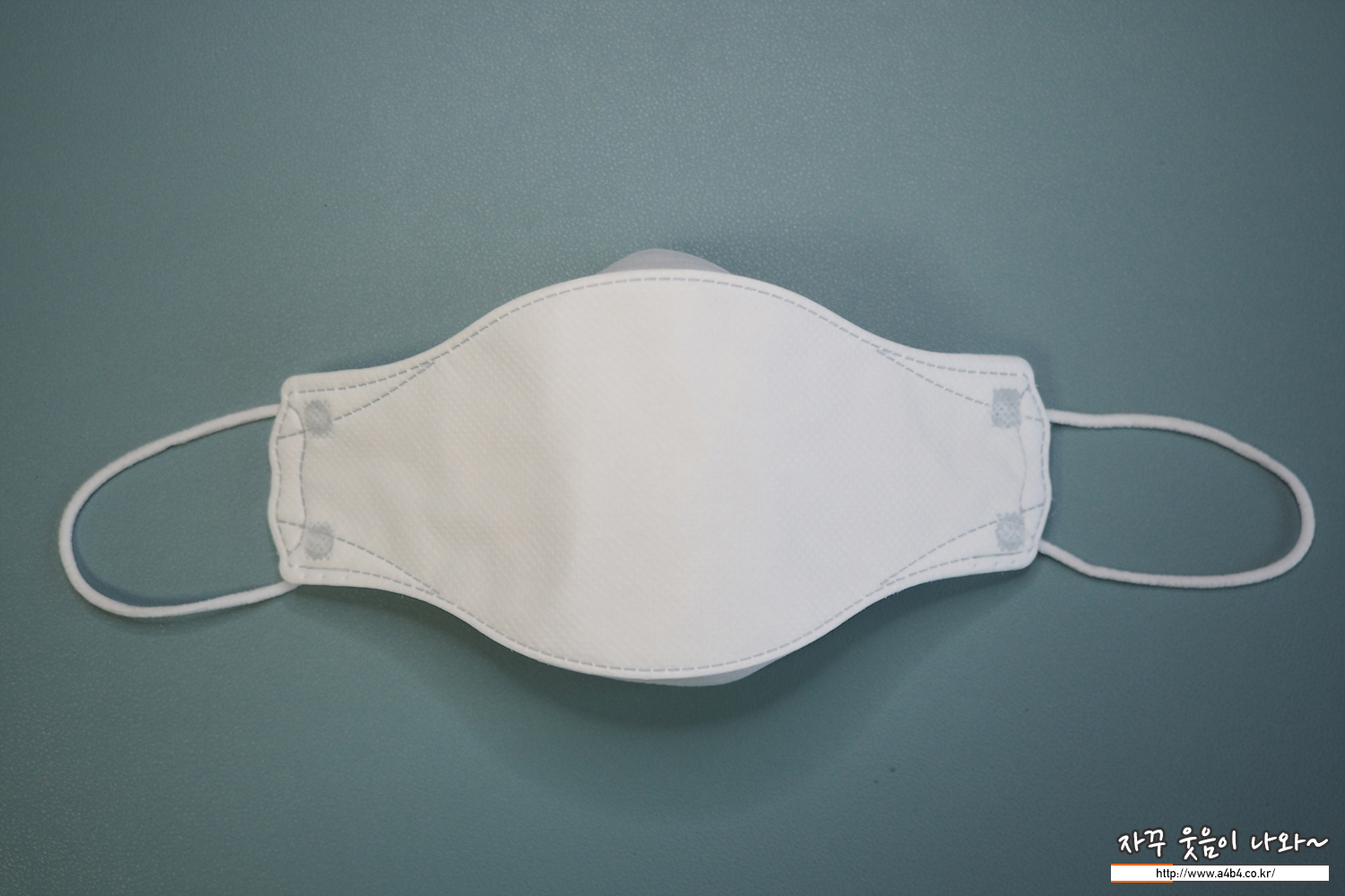 약한 도트가 처리된 드라이한 감촉의 겉감이 사용 되었으며, 조금 얇은 가로 3단접이식 3D 타입의 마스크입니다. 착용핏은 무난하며, 얇지만 힘이 없지는 않습니다.