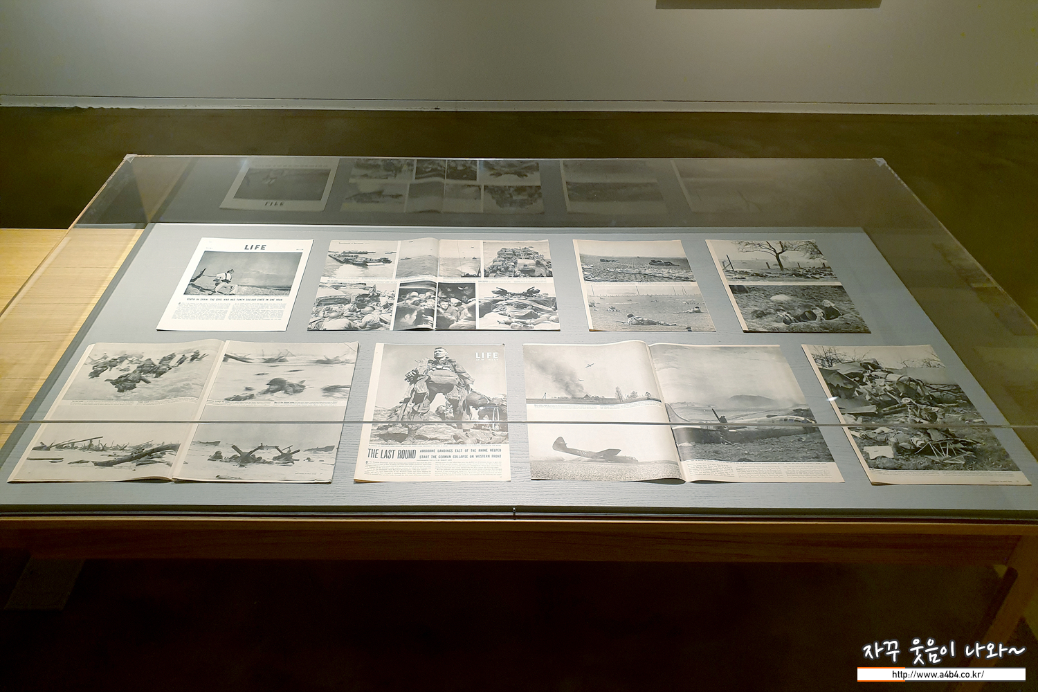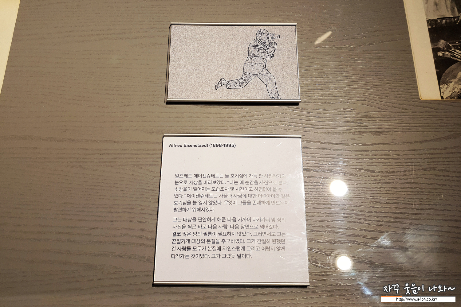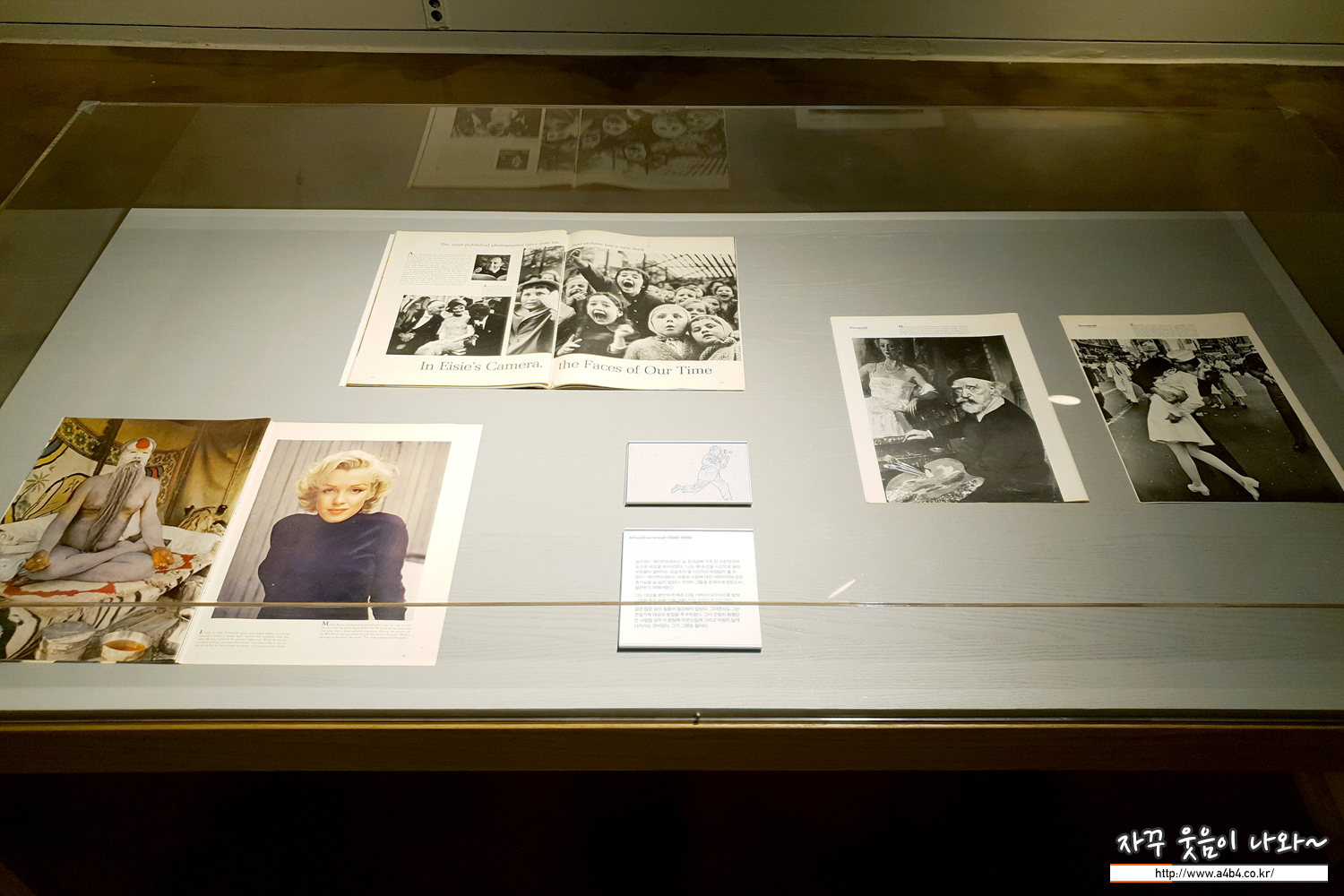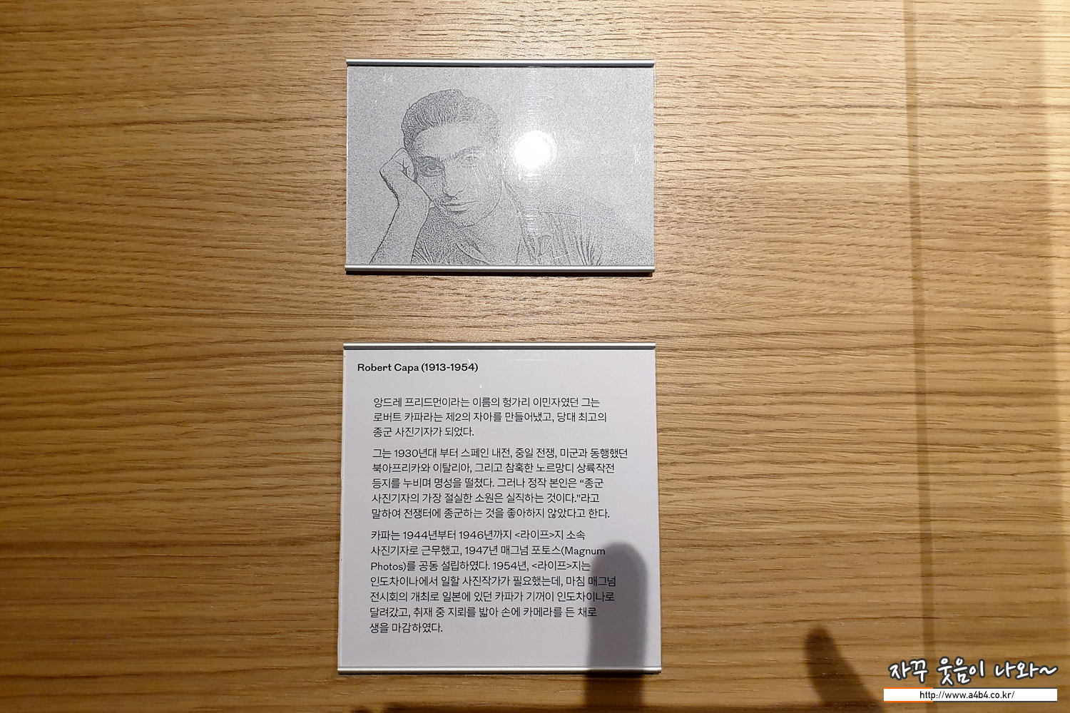 전설의 사진작가와 그의 간략한 이야기, 그리고 그의 작품이 실린 라이프지. 전시장 곳곳에 이런 공간이 준비되어 있네요. 시작은 로버트 카파!