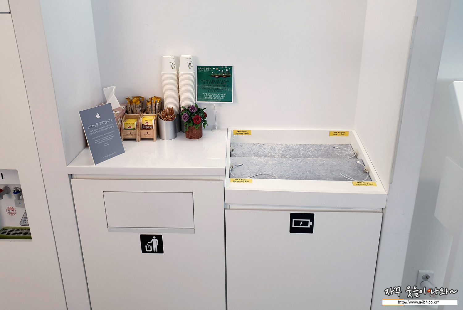 애플 제품 충전공간과 음료 공간도 있었지만 코로나19로 이용하지는 않았네요.