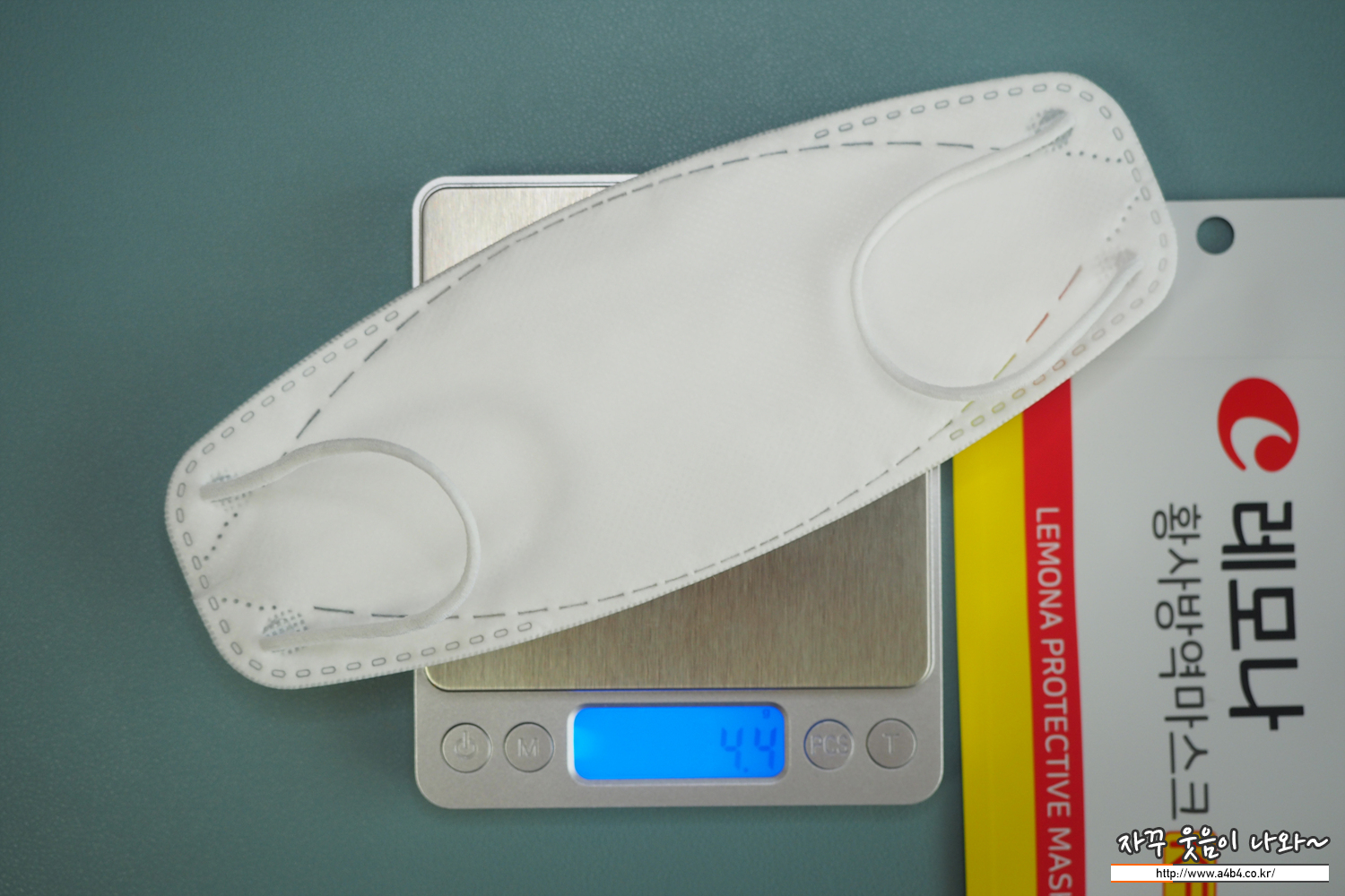 레모나 마스크 KF94 대형 중량은 4.4g으로 아주 약간 가벼은 타입의 대형 마스크 입니다.