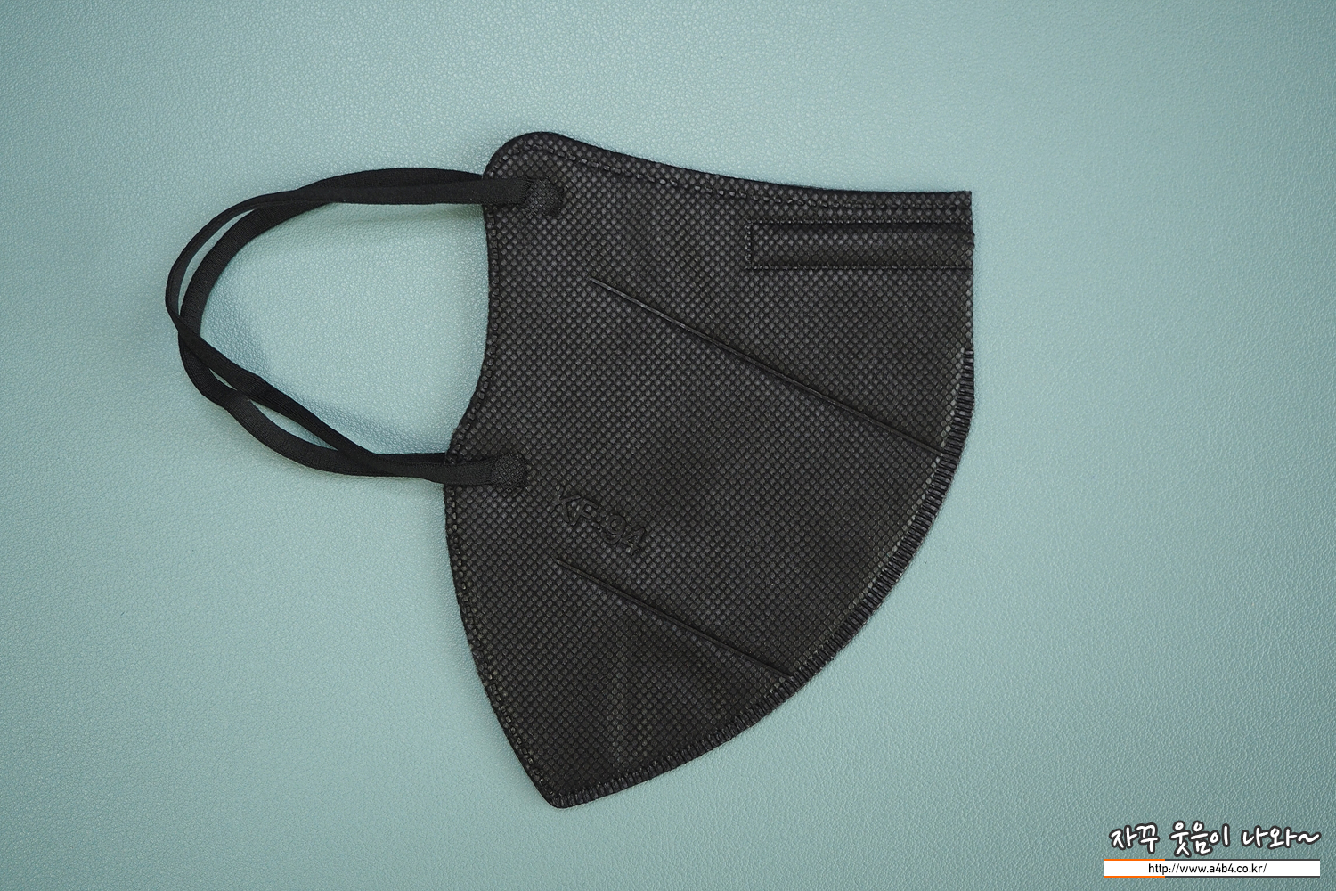 마스크 겉감은 매끈한 감촉의 검정색 부직포가 사용 되었습니다. 마스크는 다른 Kf94 블랙마스에 비해 조금 얇은 타입이지만 착용핏은 하드한 착용핏을 보입니다.