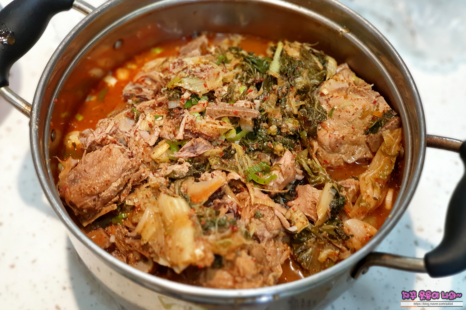 상당히 큰 냄비를 오랜만에 꺼냈습니다. 고기도 푸짐하고... 그냥 일반 냄비에 데웠다가는 넘치기 딱...