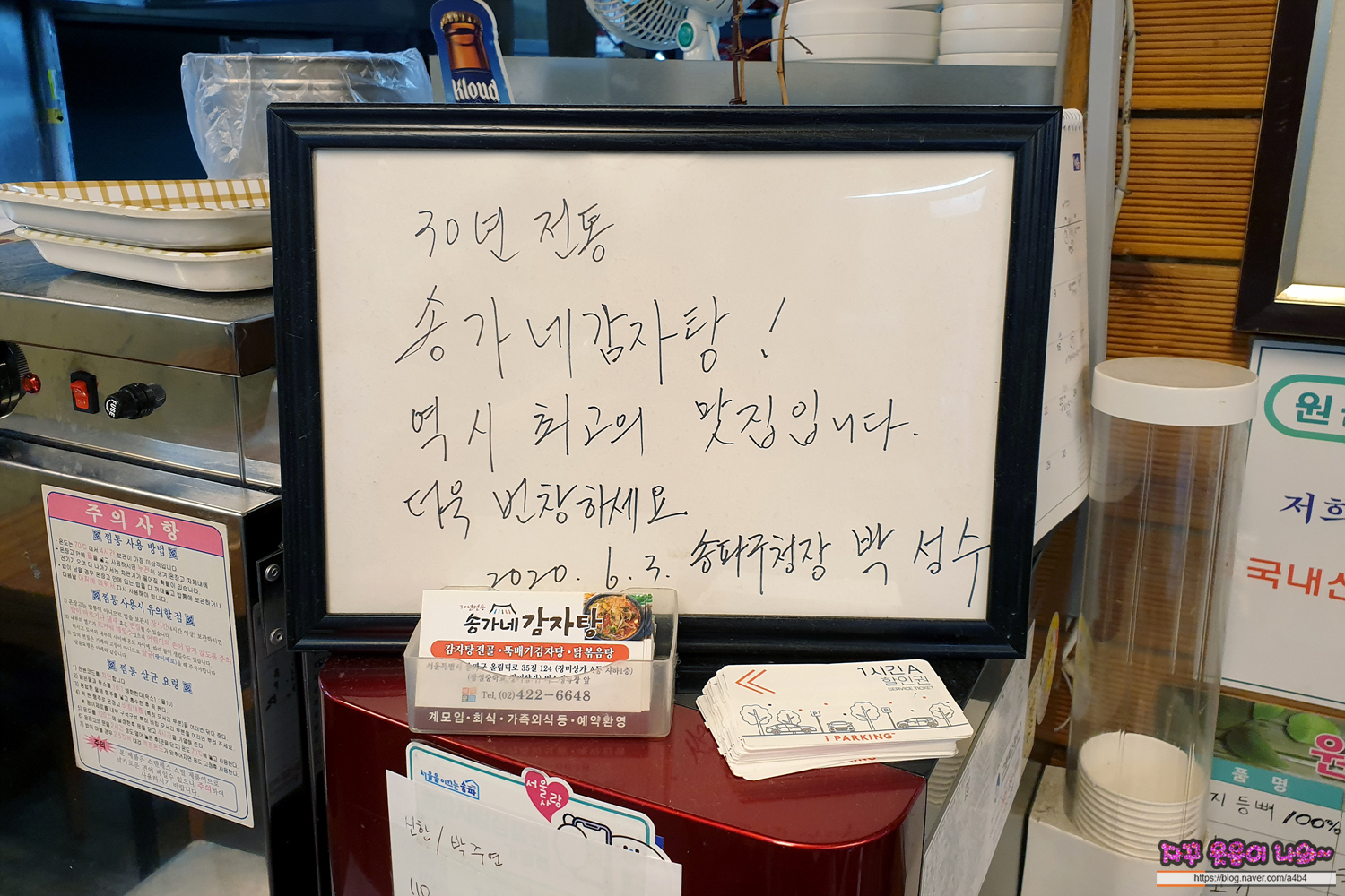 송가네 감자탕, 이러하다고 합니다. 옆에 편하게 가지고 갈 수 있도록 1시간 무료 주차권도 준비되어 있네요.