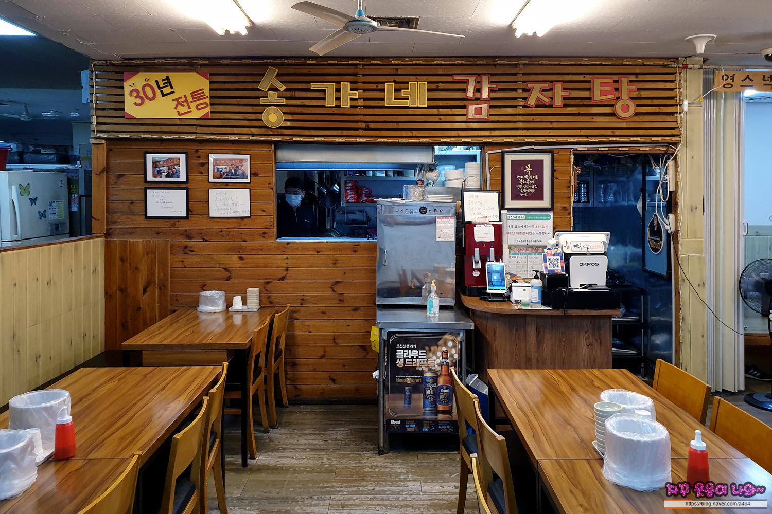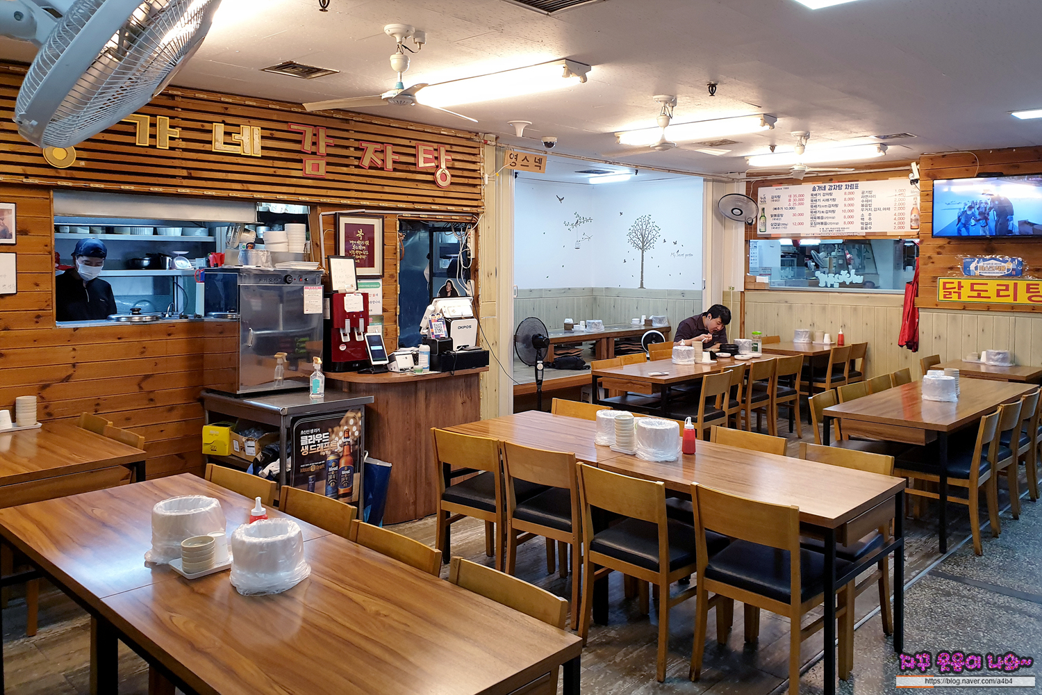 송가네 감자탕 실내 모습 주말 점심과 저녁 중간시간에 방문했더니 손님 한 분만 계시다는, 코로나19가 무서워서 감자탕 포장해 가려고 했는데, 식당이 한가한 것을 보니 잠깐 유혹이...