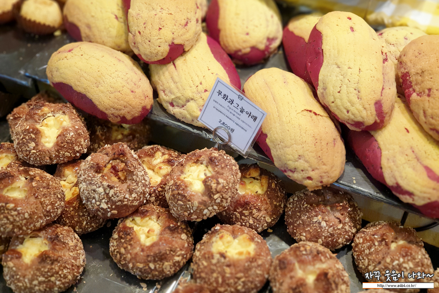 입구에 진열되어 있는 밤과 고구마, 감자를 이용한 빵들...
