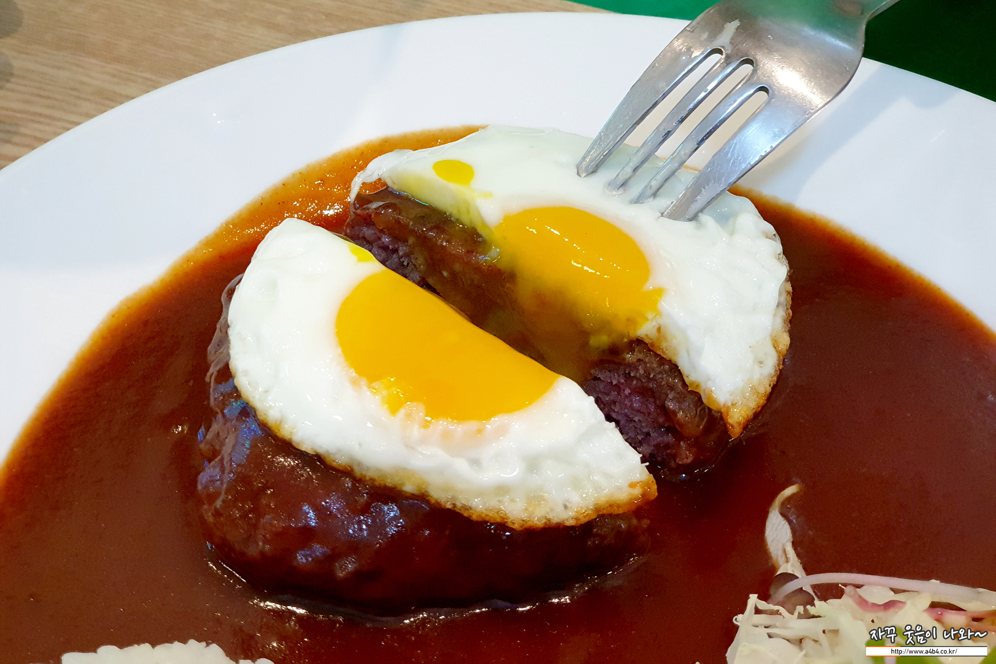 역시 함박스테이크는 계란 노른자와 소스를 함께 먹는 그 맛이...
