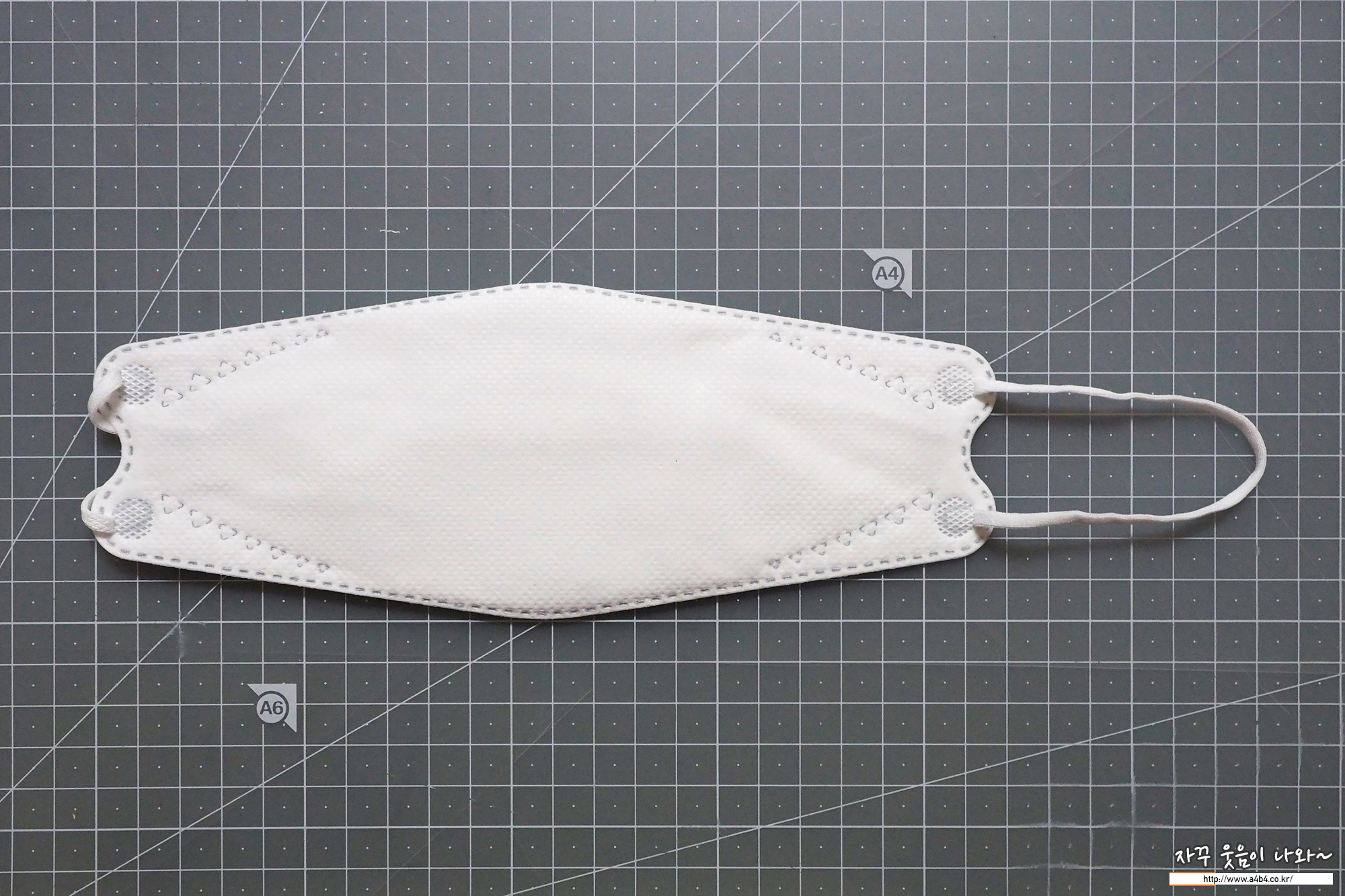 마스크 사이즈는 길이 약 22센티미터, 높이 약 8센티미터로 다른 대형마스크에 비해 1센티미터 정도 긴 사이즈를 보입니다.