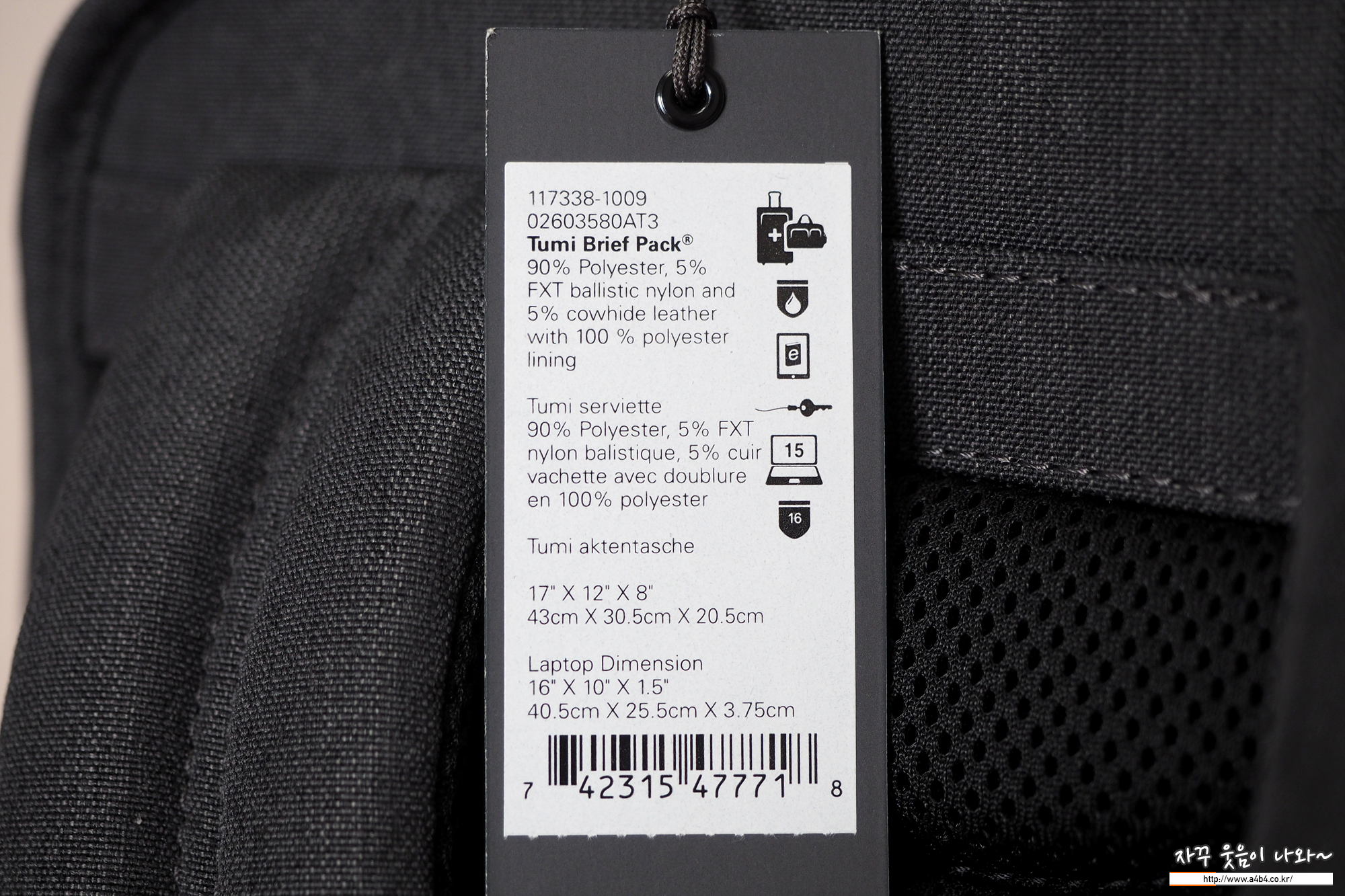 제가 구입한 남성용 투미 백팩 알파3 브리프 컬러는 '앤트러사이트'입니다. 무난하면서도 약간 독특한 재질 처리된...