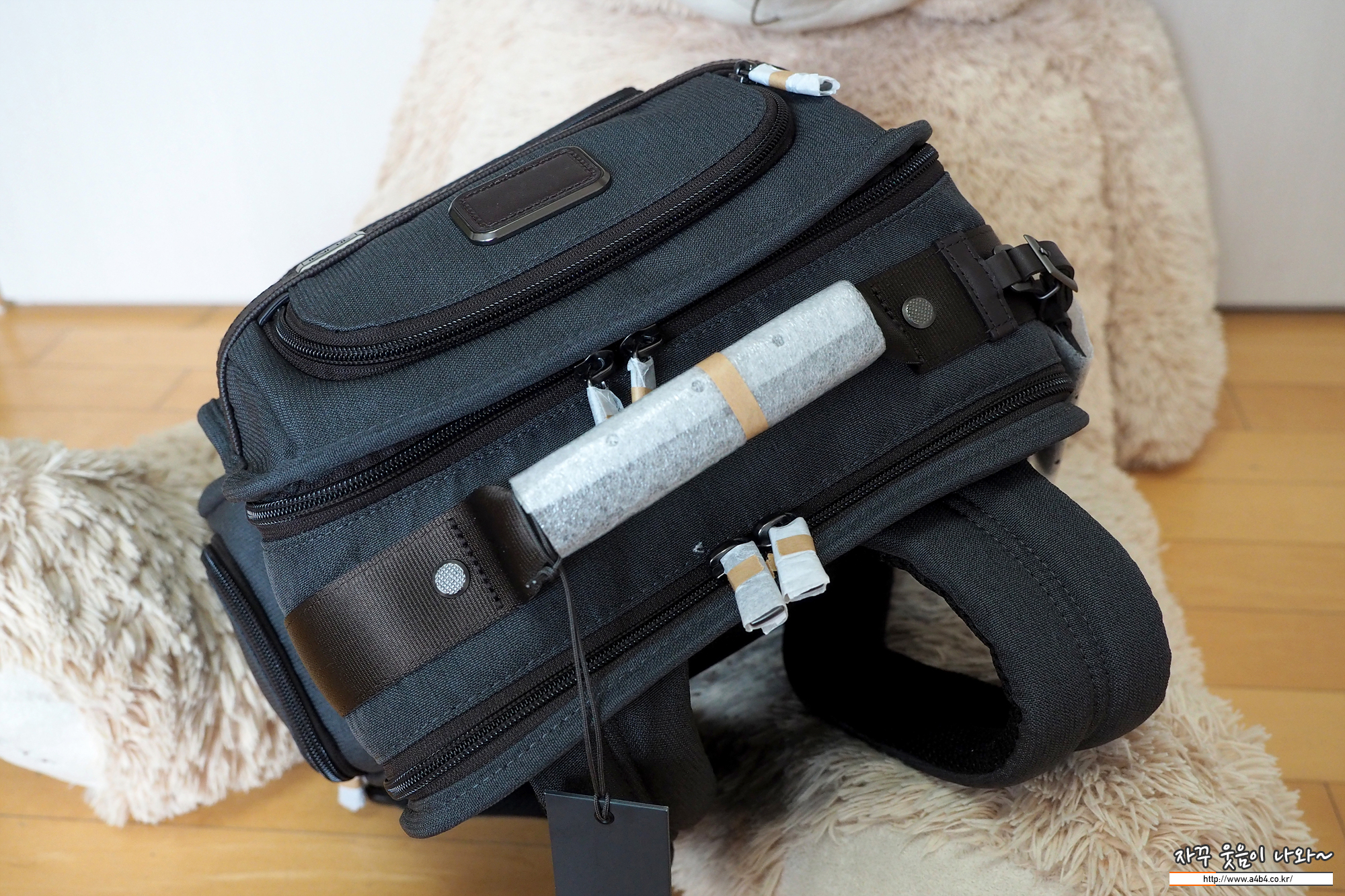 투미 백팩 뒤에는 여행용 가방에 저치가 가능한 판? 처리가 되어 있습니다. 코로나 빨리 끝나고 출장이나 여행 갔으면...