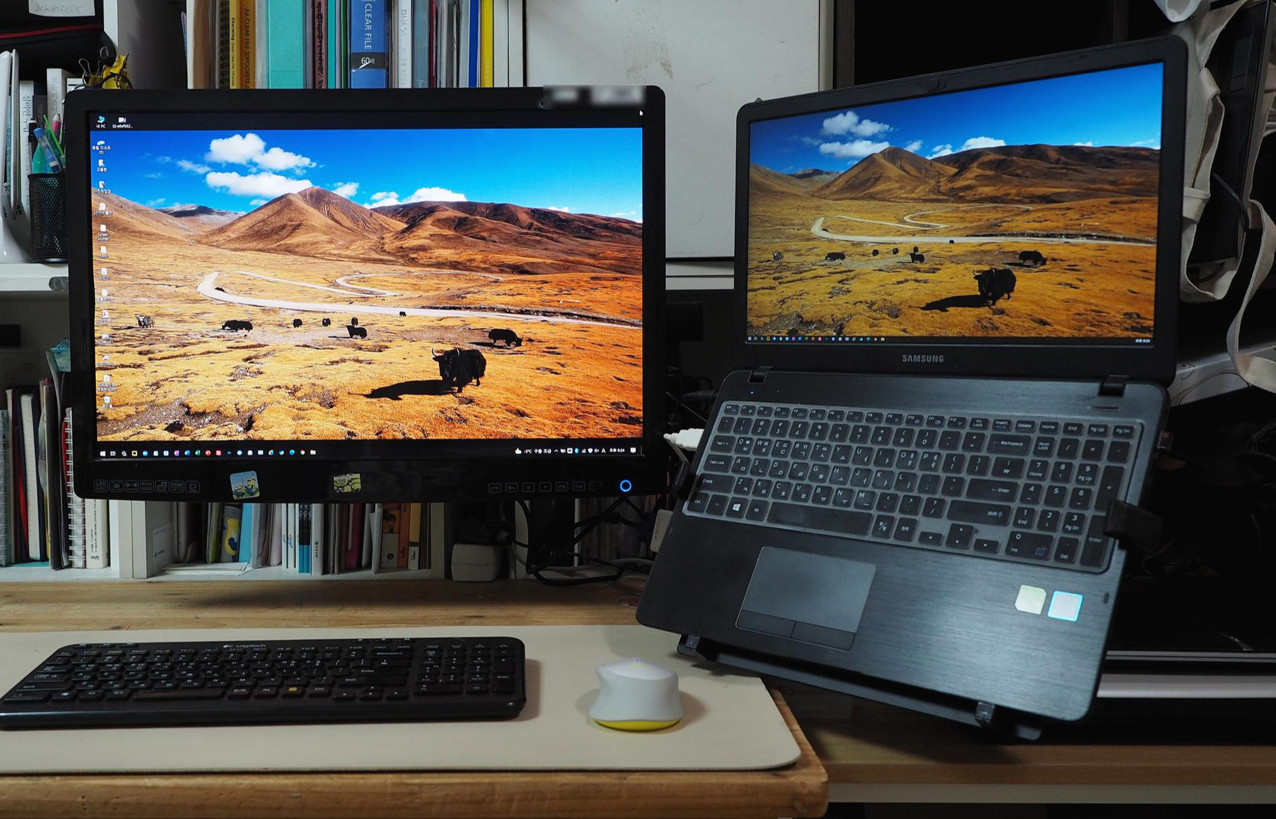 회사에서는 듀얼모니터로 집에서는 모니터와 노트북 거치용으로 사용하고 있습니다.