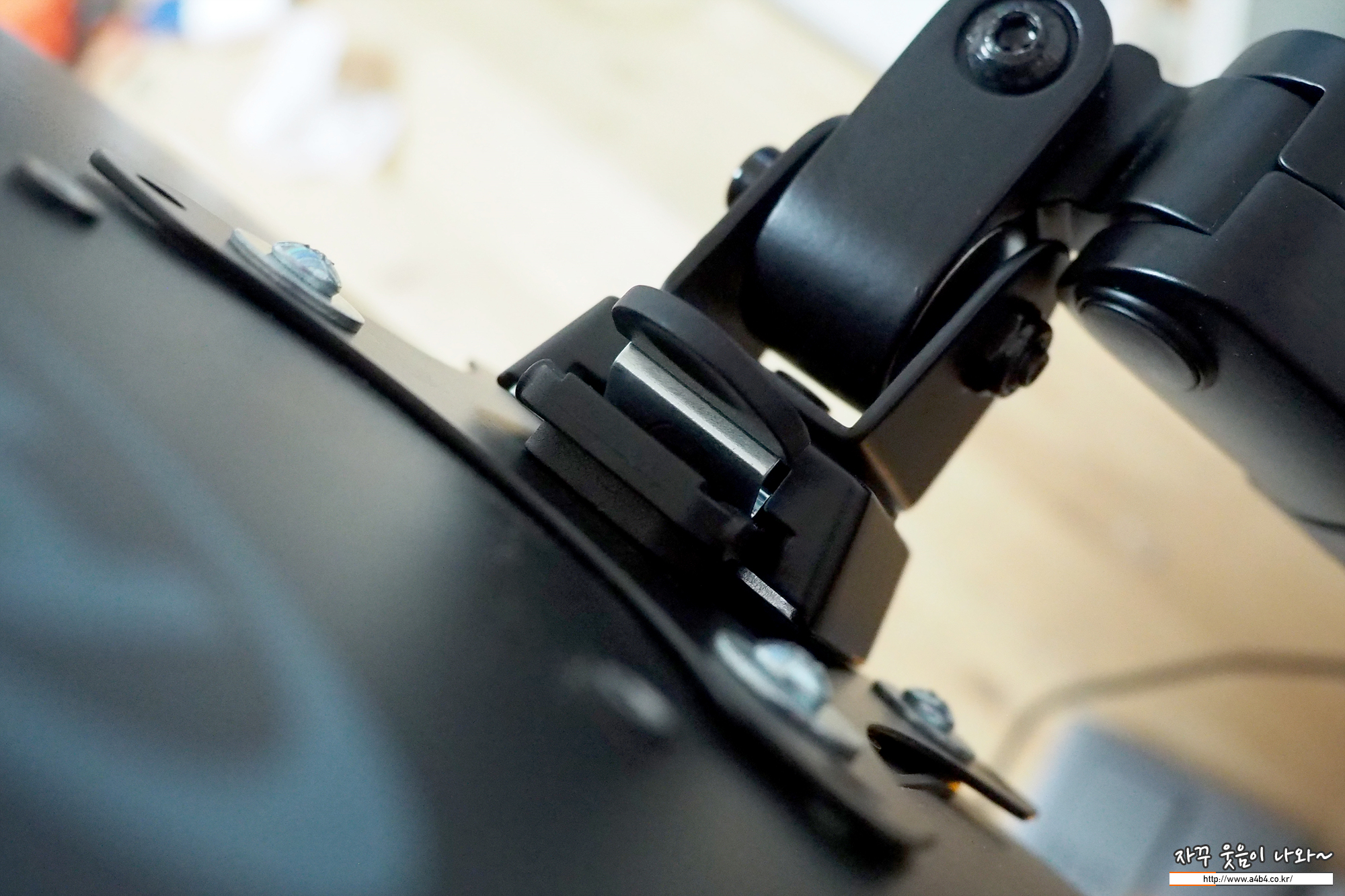 모니터암에 장착하면 됩니다. 이후 렌치를 이용해서 모니터암 장력을 잡아주면 1차로 모니터 장착이 완료됩니다.