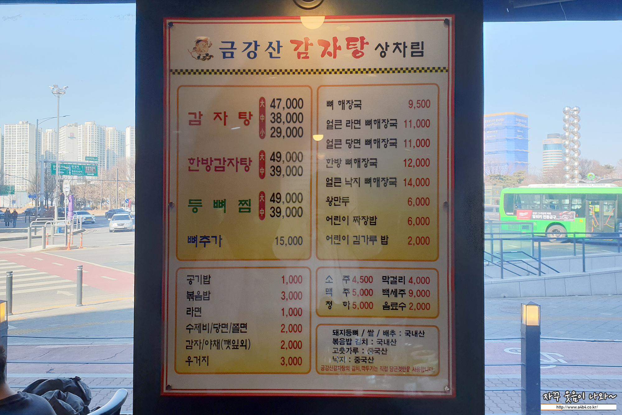 잠실 맛집인 금강산 감자탕 방이본점 메뉴 및 가격입니다. 이곳 메인 메뉴는 감자탕!!!