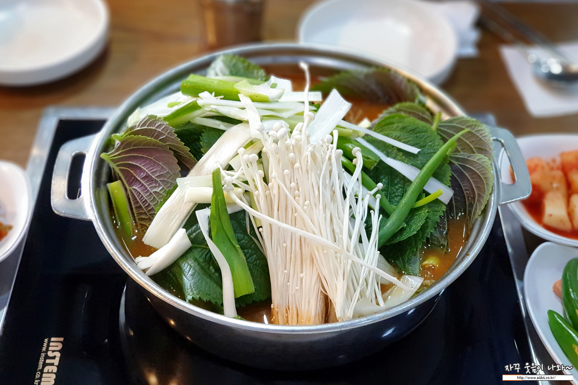 기본 반찬은 이렇게 나오고요. 반찬들은 한 켠에서 셀프로 리필 가능합니다.
