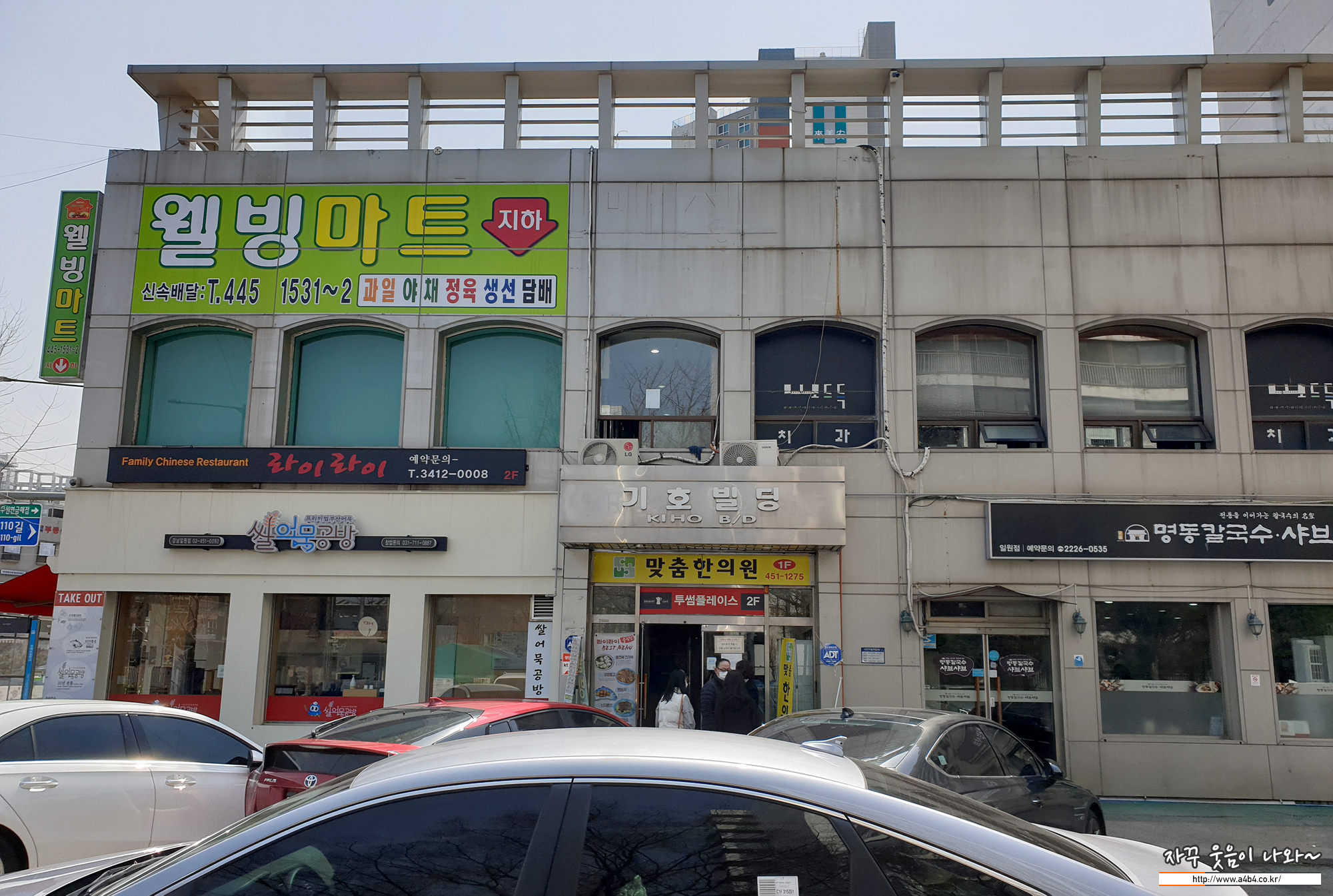 라이라이 위치는 지하철 대청역 개포한신아파트옆 기호빌딩 2층에 위치해 있습니다. 자세한 위치와 주차장 정보는 글 하단에서 소개할께요. 사진 속 건물 2층에 위치해 있고요. 엘리베이터는 없었던 것으로 기억하네요.