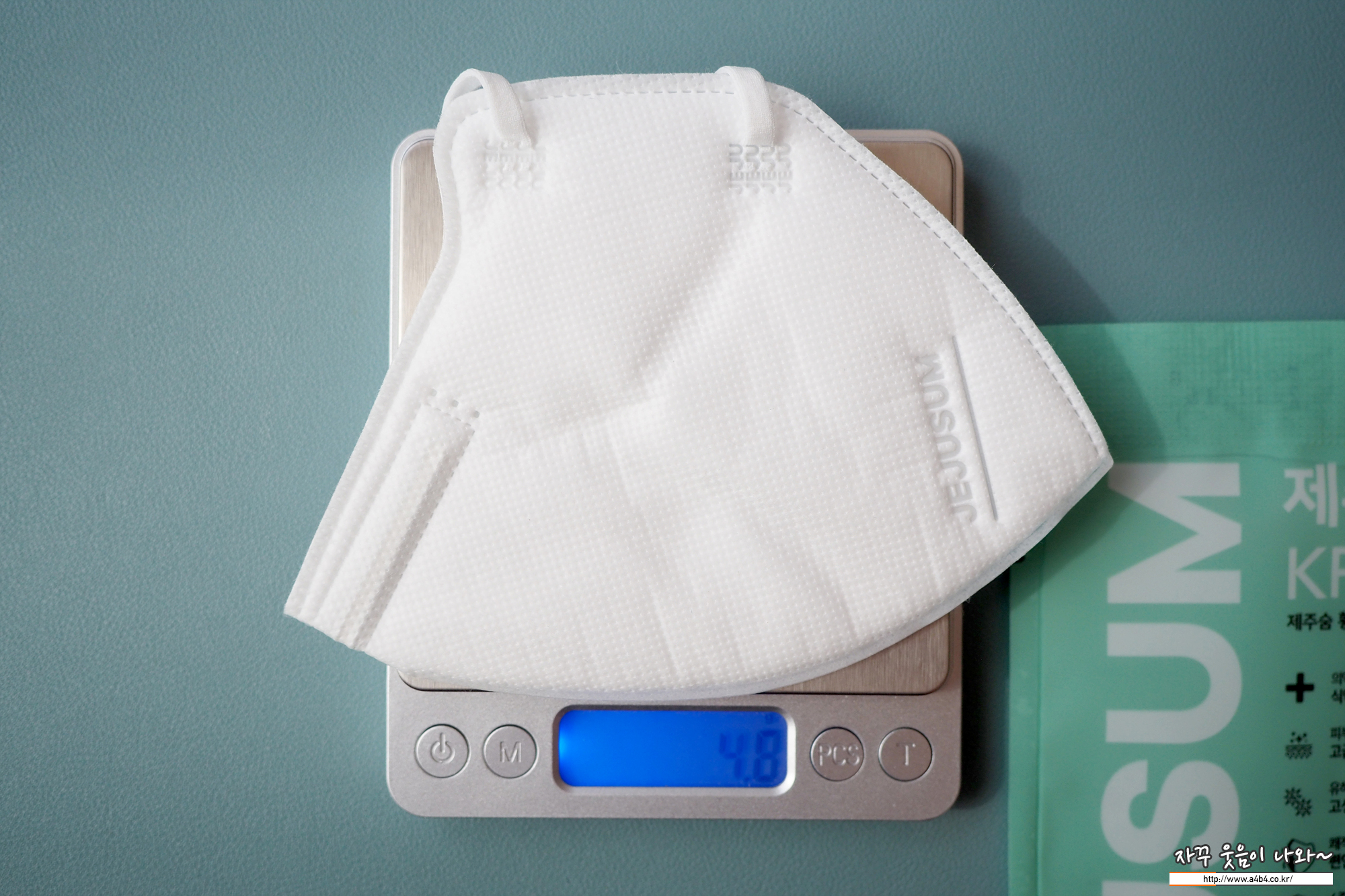KF94 새부리형 제주숨 마스크 대형 중량은 4.8g으로 타사 제품과 비슷하네요.