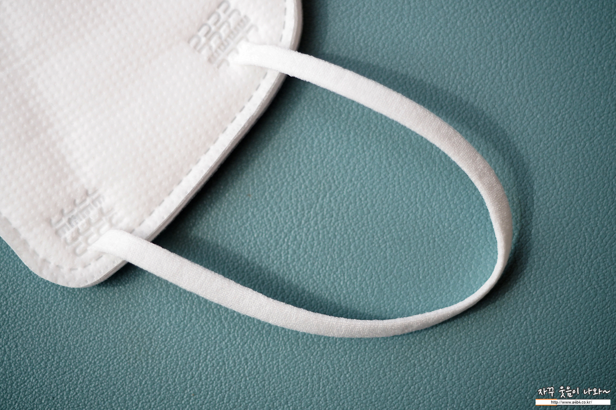 제주숨 마스크 이어밴드는 납작한 타입의 귀걸이끈이 마스크 전면에 접착되어 있습니다. 귀걸이끈 접착처리도 제품명을 이용해서 고급스럽게 처리 했습니다. 고가 마스크 참고 많이한 것 같네요.