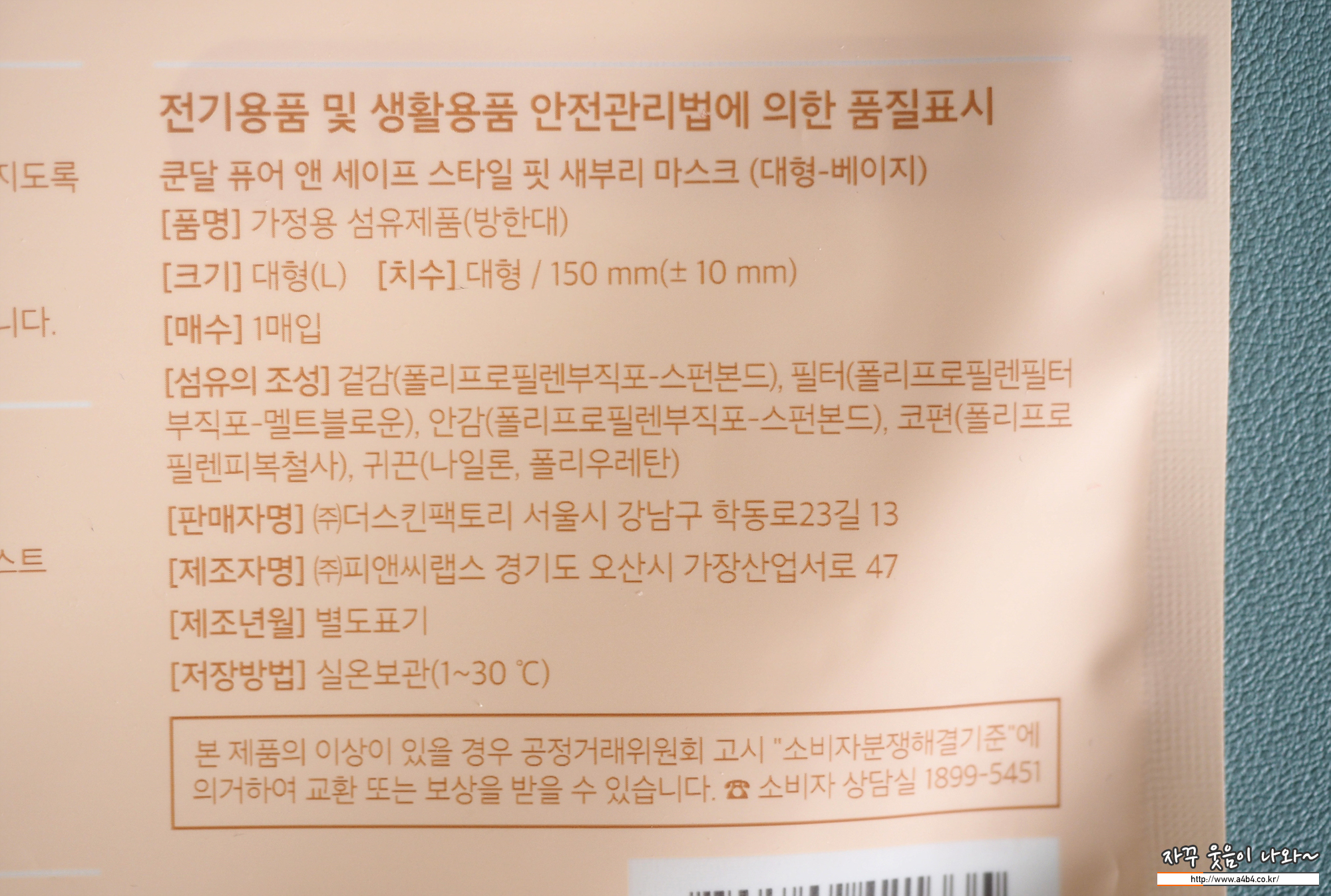 아쉽게도 새부리형 쿤달 마스크는 식약처 허가 및 관리제품인 보건용마스크는 아닙니다. 일반 공산품 방한용 마스크로 안내되어 있습니다. 다만 KC안전요건 테스트를 완료했고 국내산 자재를 사용한 것으로 쿤달 공식사이트에 표시되어 있습니다.