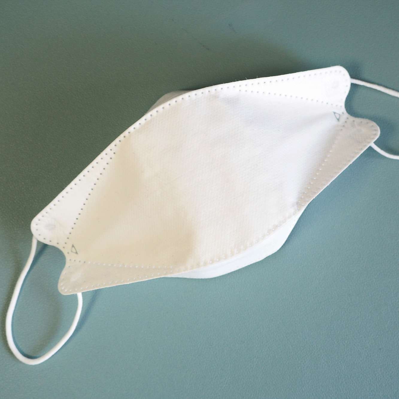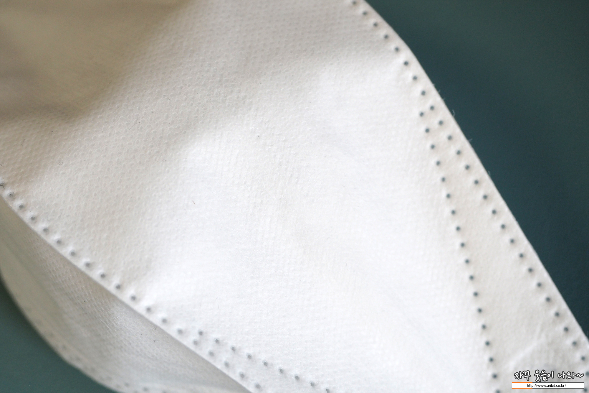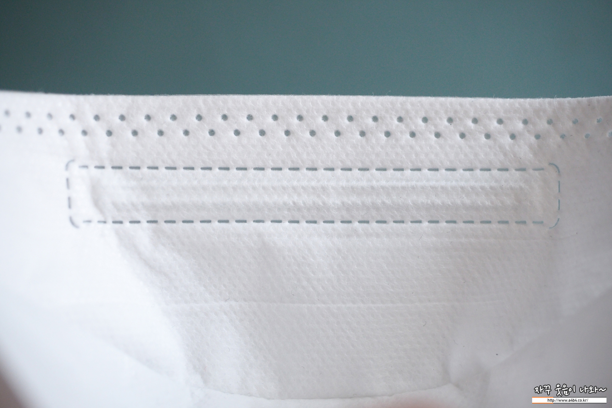 올핏 황사방역용 마스크 내피는 보드라운 촉감의 부직포가 사용되었습니다. 무엇보다도 사진과 같이 내피에 상당히 많은 보풀이 일어나 있습니다. (착용전 사진)