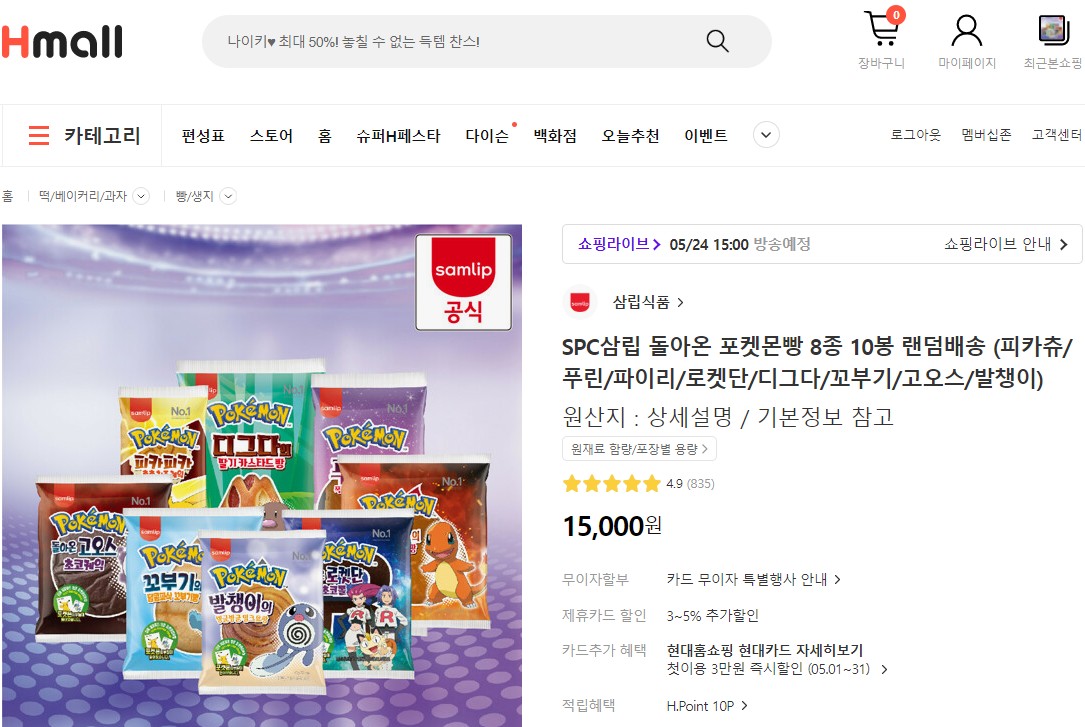 언제부턴가 H몰, NH쇼핑, 카카오쇼핑, GS몰 등 유명 쇼핑몰에서 스팟 이벤트로 포켓몬빵을 판매하고 있다는...