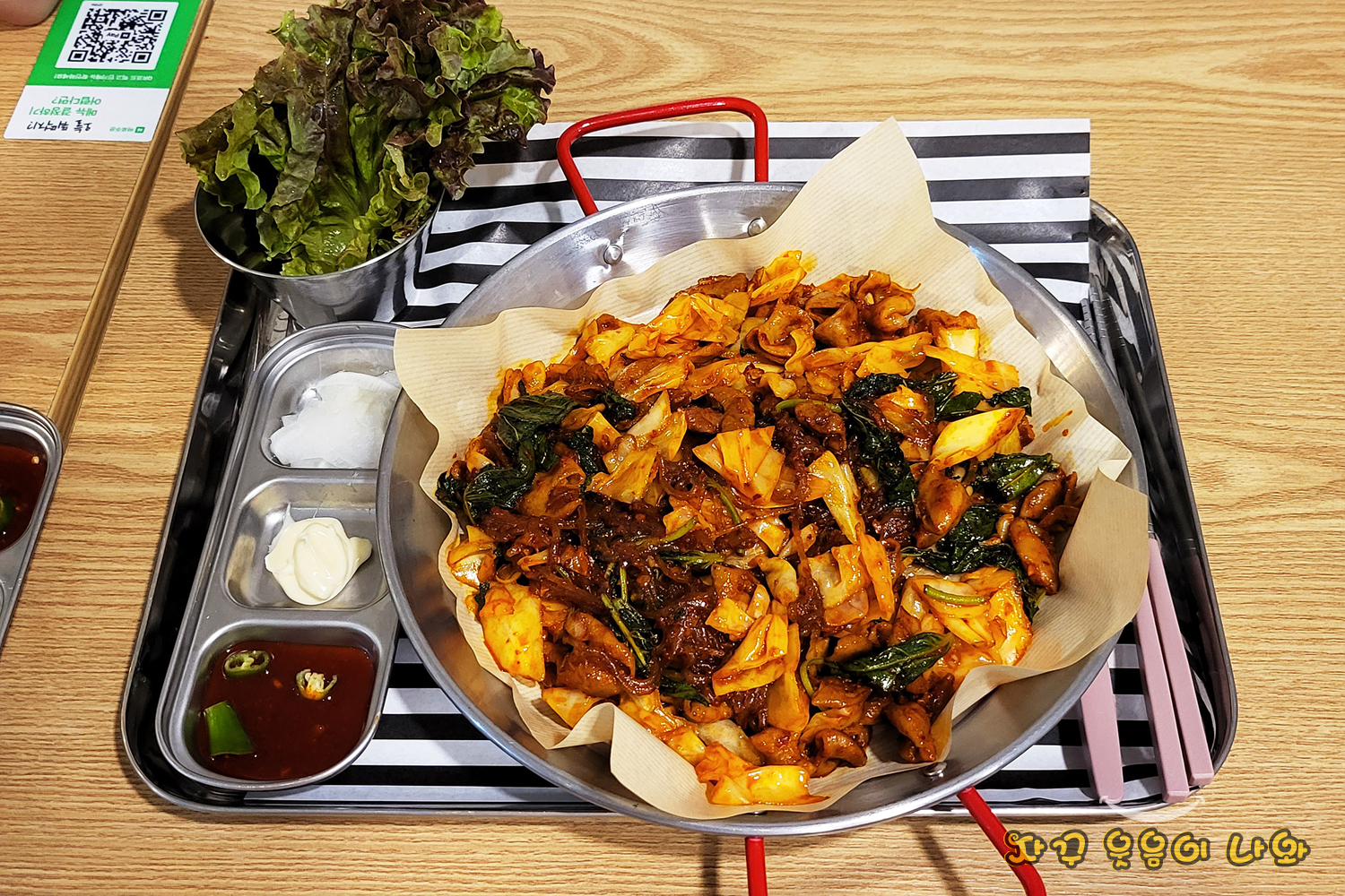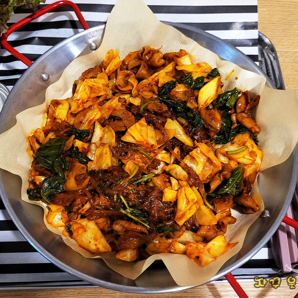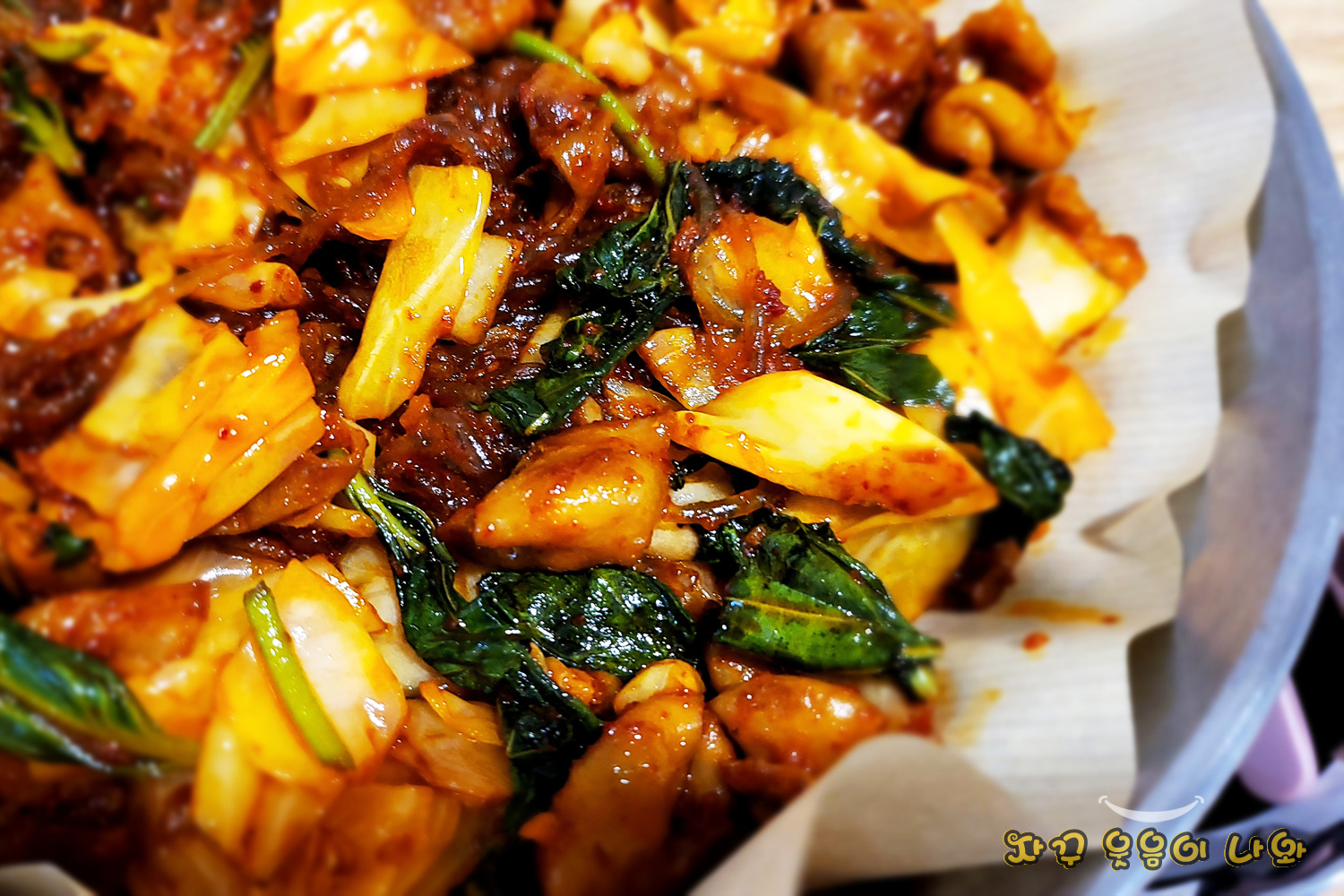야채곱창이라는 이름에 맞제 양배추와 양파, 깻잎 등 야채들이 푸짐하게 들어 있습니다. (곱창보다 더 많이...)