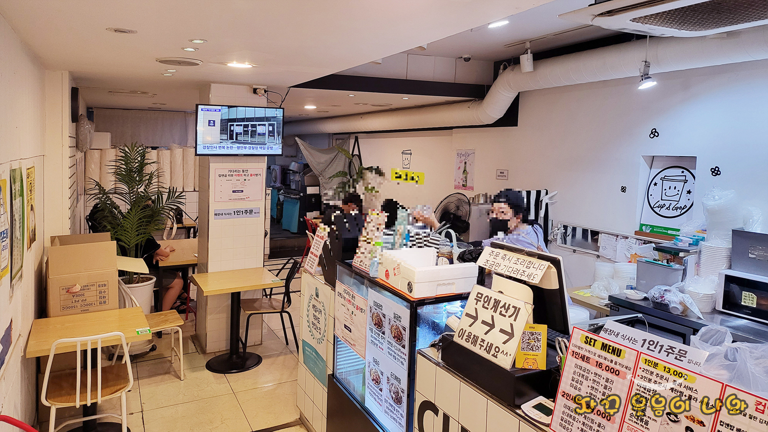 잠실새내역 곱창맛집인 컵앤곱 실내모습입니다. 2인 기준 테이블이 대여섯개 준비되어 있습니다. 식당 식사 보다는 배달중심으로 운영됭는 것 같기도 한데요. 실내는 기존 곱창집에 비해서는 깔끔하고 정돈되어 보입니다.