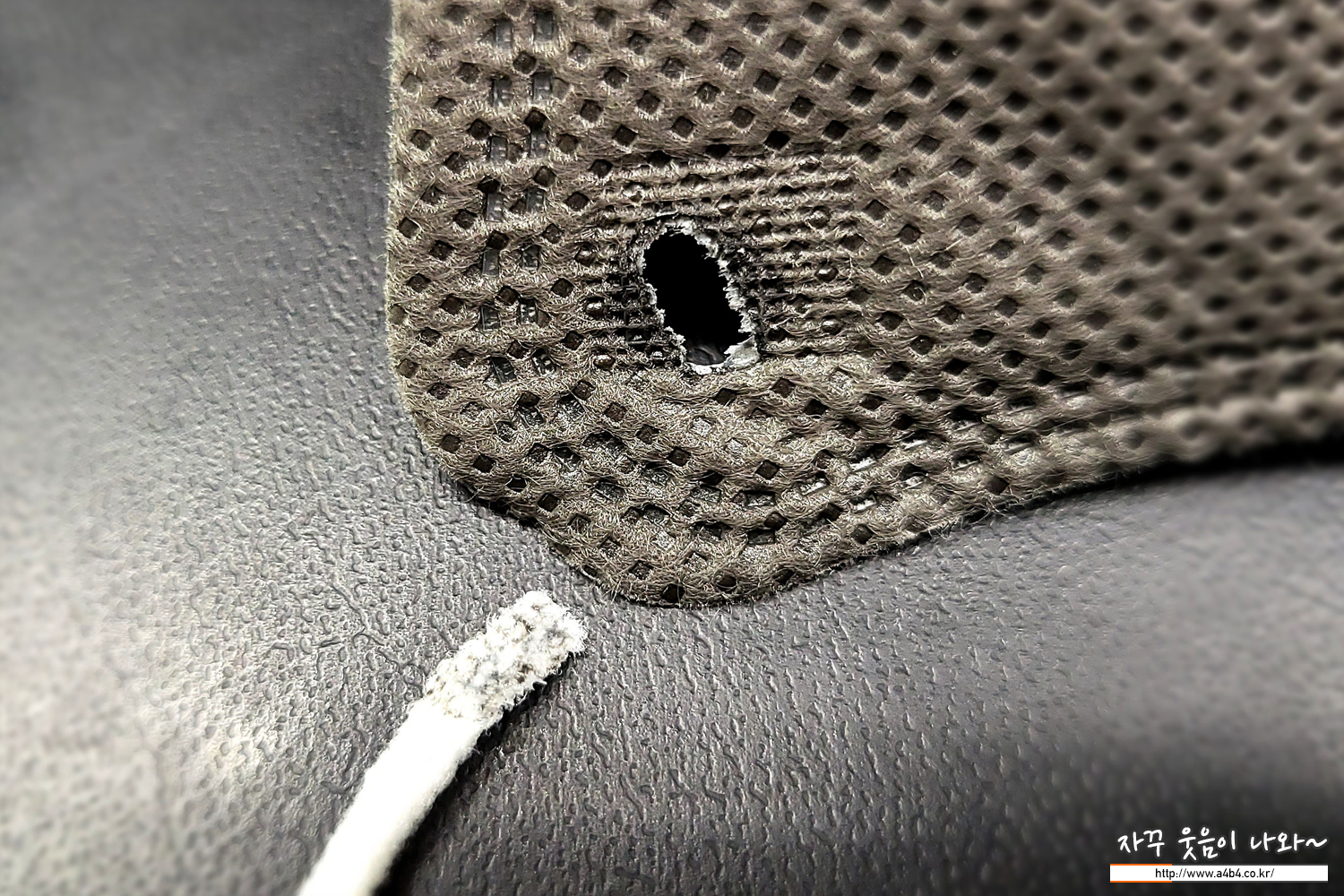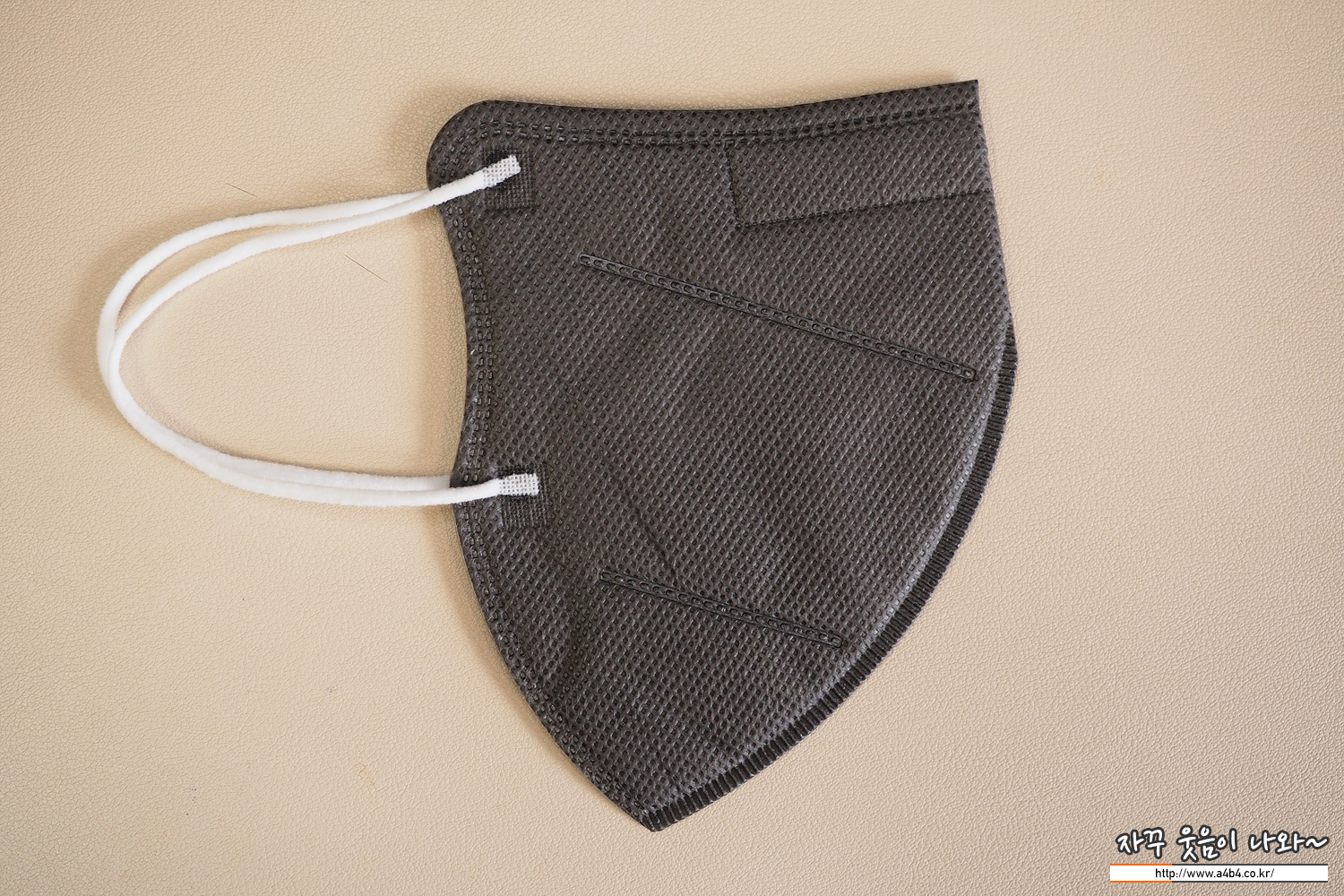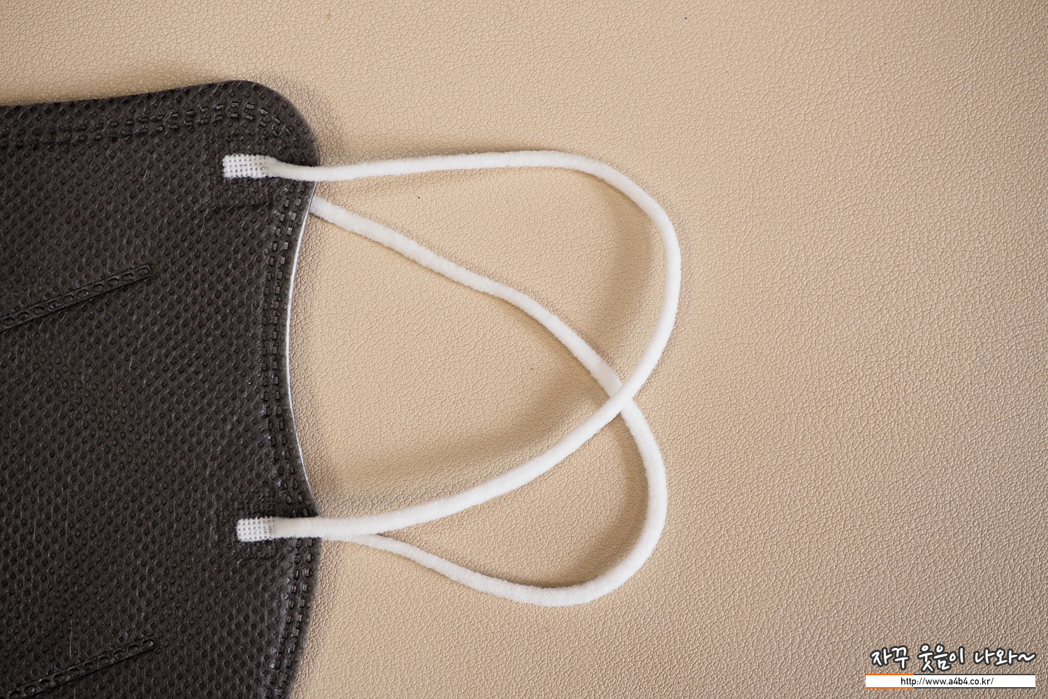 원형의 귀걸이끈이 마스크 앞부분에 부착된 아이키마스크는 대부분의 그레이컬러 마스크의 귀걸이끈이 부직포색상에 맞추거나 검정색인 반면 흰색 귀걸이끈이 사용되었습니다. 이 부분은 개인적인 호불호가 있어 보이네요.