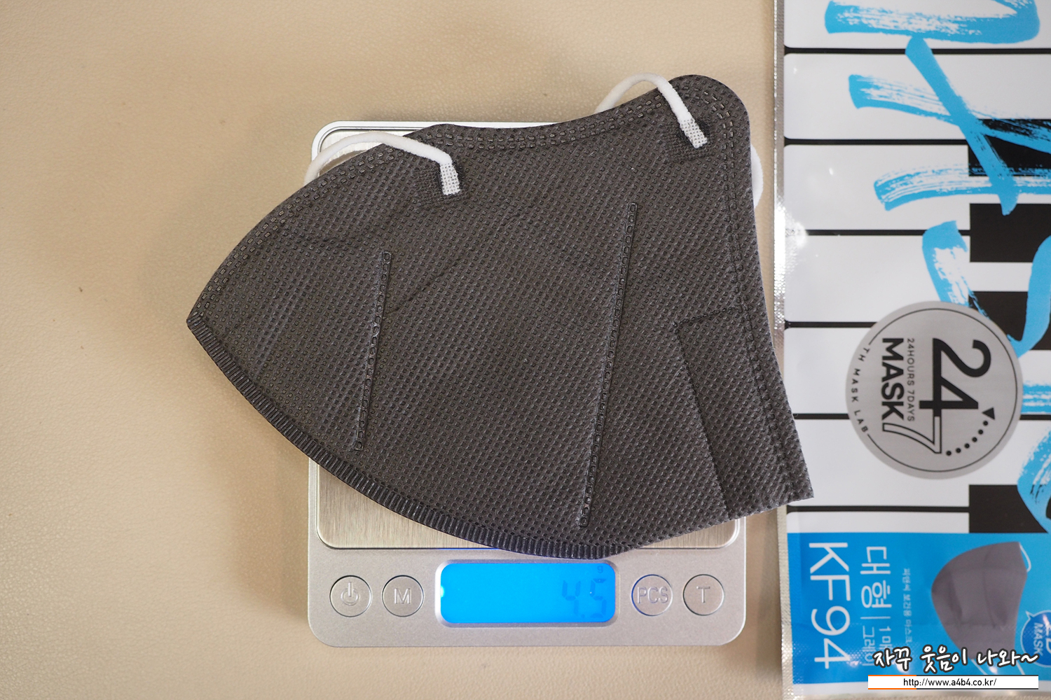 이사칠 컬러마스크 그레이 대형 중량은 4.5그램으로 타사 새부리타입 대형사이즈 마스크 중향과 비슷합니다.
