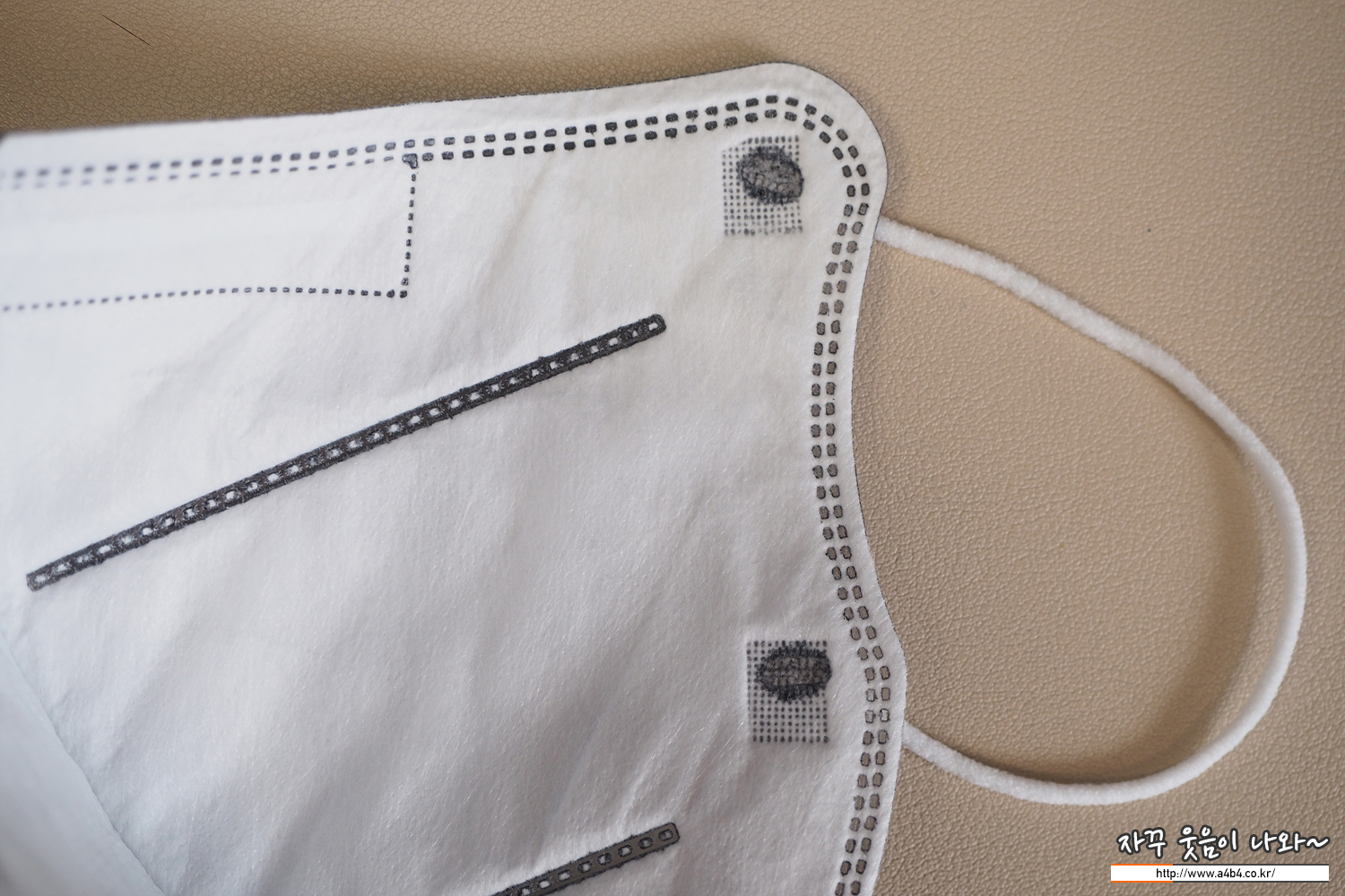 아래 사진과 같이 마스크 안감에 약간의 보풀이 보입니다만, 몇 시간 착용하는 동안에 얼굴이 가렵거나 간지러운 피부 트러블은 없었습니다.