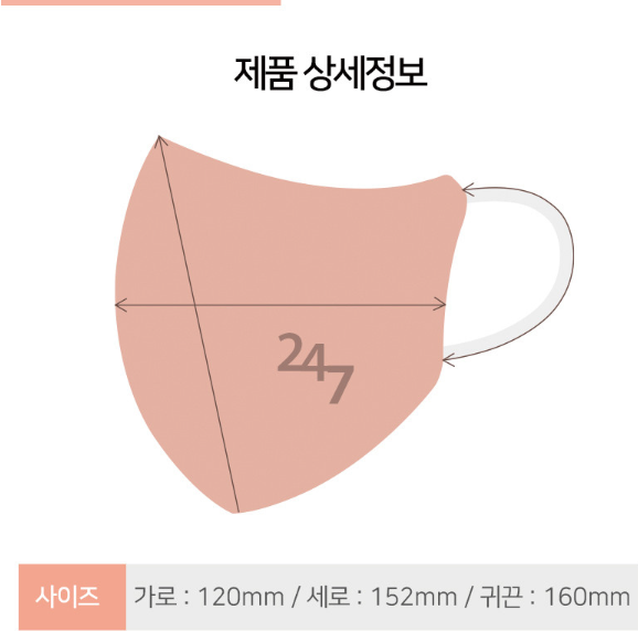 고급 새부리형 마스크에 많이 사용되는 납작한 타입의 칼국수끈이 사용되지 않았고 마스크 색상과 다른 흰색끈이 사용된 부분이 아쉽습니다. 무엇보다도 착용후 몇 시간 지나지 않아 마스크끈이 톡 하고 끊어진 부분은 해당 제품을 추천하지 못하는 이유입니다. 너무 결정적인 247마스크 단점이 보이네요.