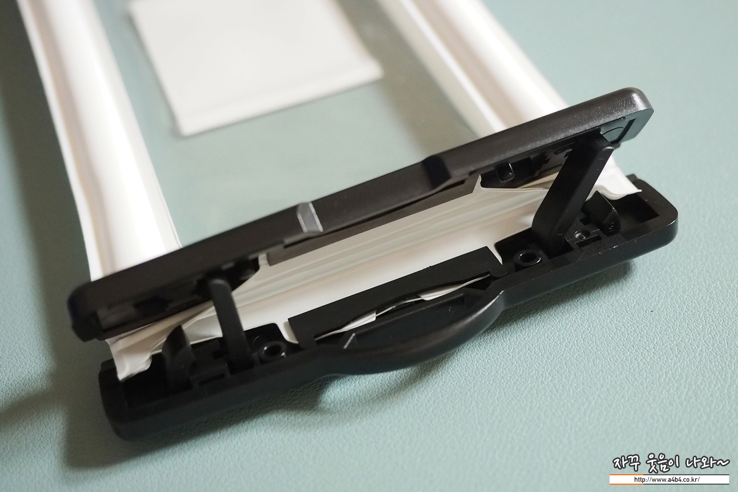기존 제품보다는 비닐 부분이 상당히 얇습니다. 특히 클립 부분이 비닐 부분과 접합이 약해 보이네요. 사용 횟수가 많아지면 늘어나거나 찟어질 것 같은 생각이 듭니다. 조금만 더 두께있는 비닐은 사용했으면 더 좋았을 것 같네요.