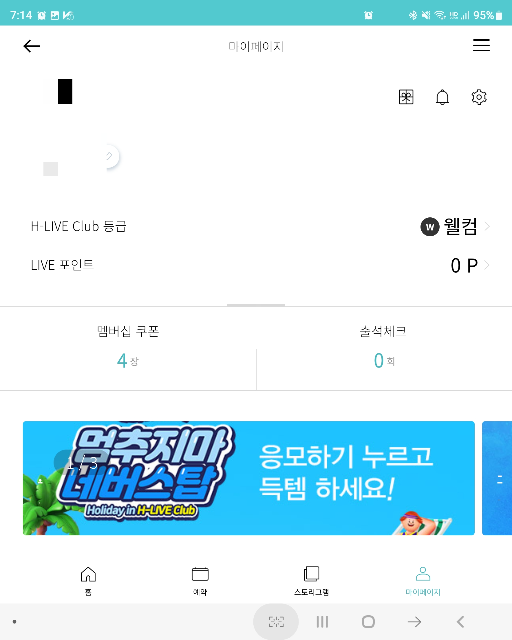 설치 후 회원 가입하면 4장의 쿠폰이 발급되는데, 아래와 같이 설악 워터피아 50% 할인권이 빌급되어 있습니다. 이 모바일 할인권을 매표소에 제출하면 성인 기준으로 반 값이 37,500원에 입장이 가능합니다.