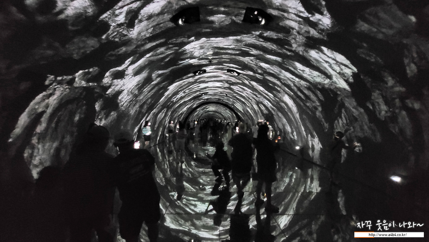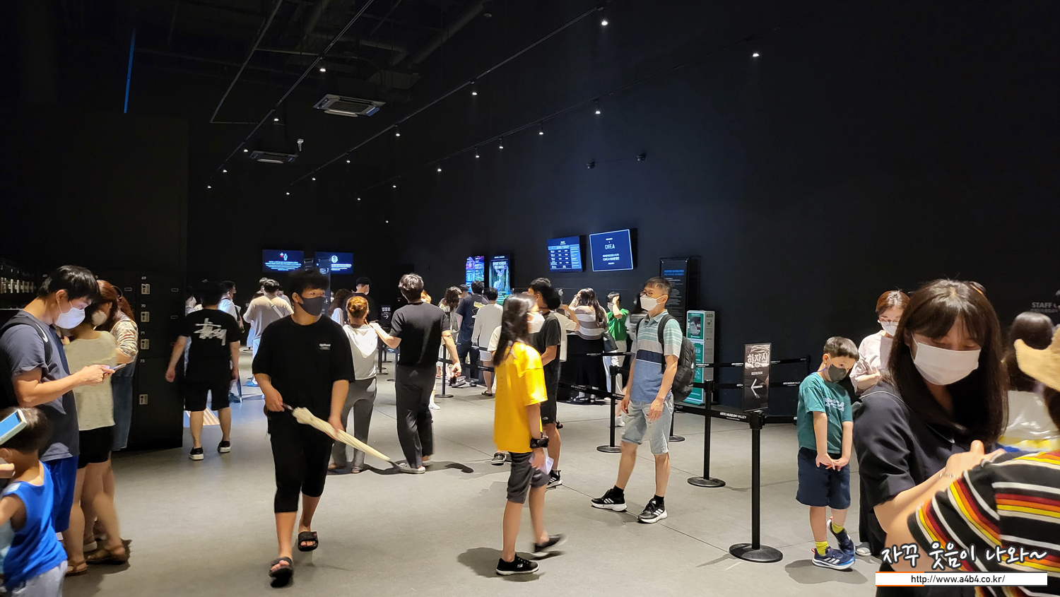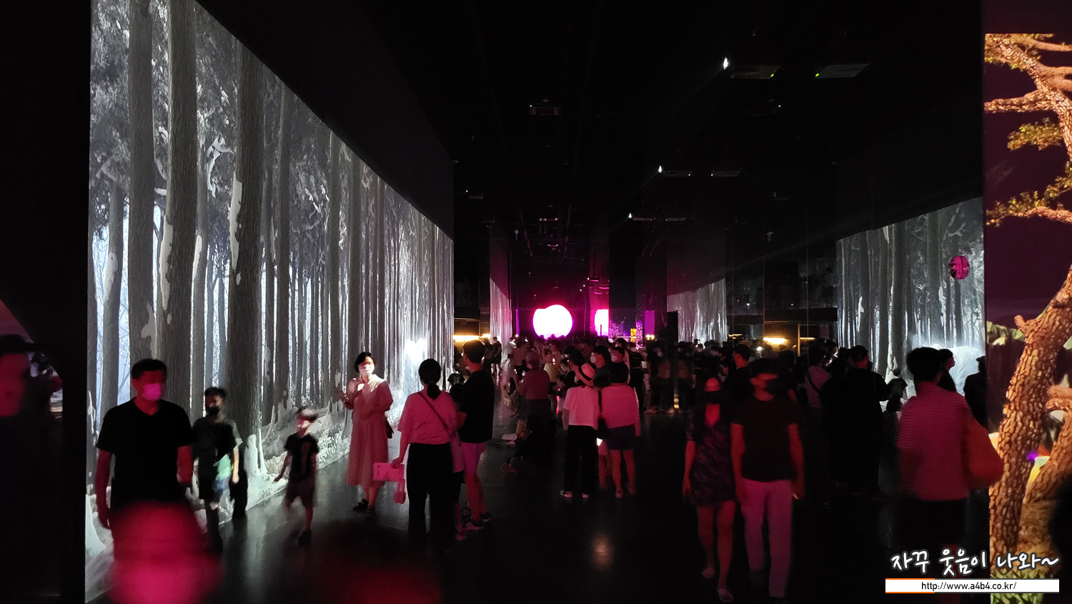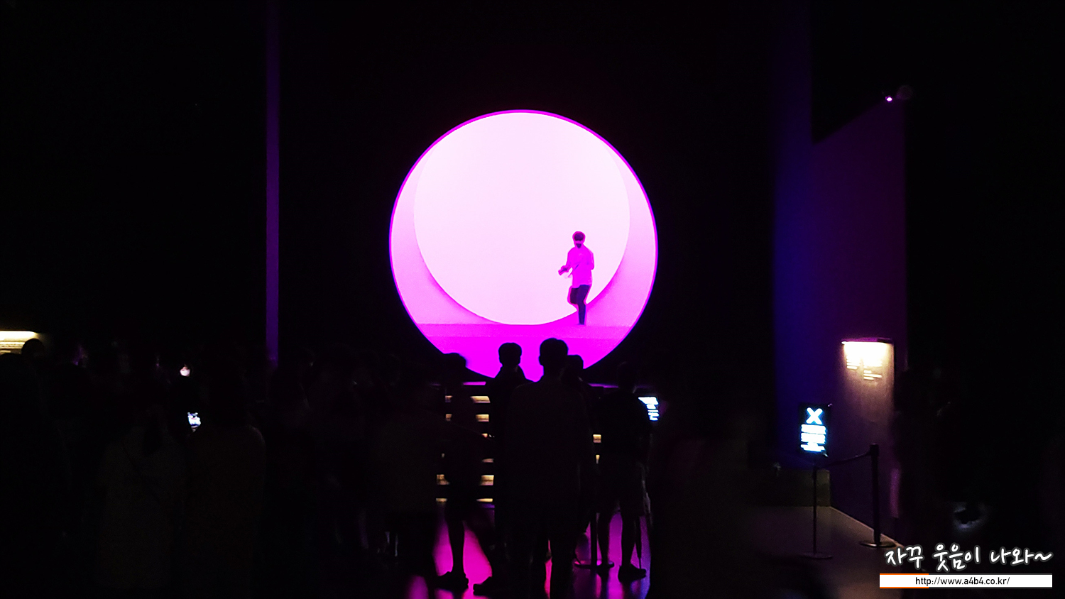 여름휴가를 맞이한 관광객과 단체 관람객, 곳곳에서 중국어도 들이는 상황. 미디어 아트 전시 공간으로 실내는 상당히 어둡네요. 밀실 공포가 있거나, 야맹증이 있으신 분들에게는 추천 드리지 못하겠네요.