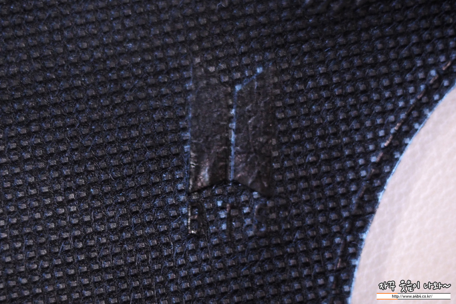 패턴 처리된 유광 블랙 발색을 보이며 염색 상태와 발색은 상당히 깔끔하게 처리되어 있습니다. 블랙 컬러 완성도는 높다는... 마스크 촉감은 매끈한 타입의 제품입니다.