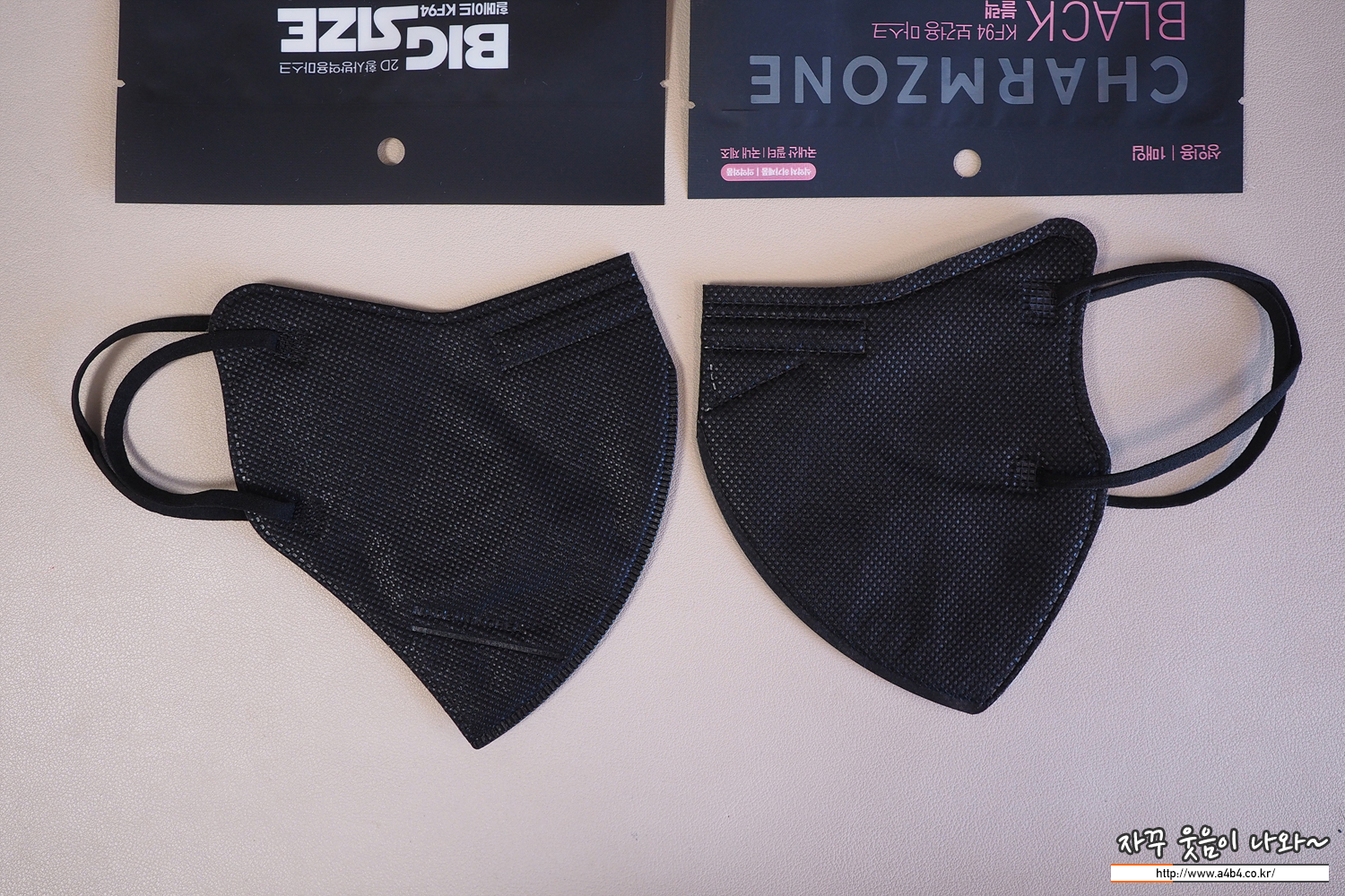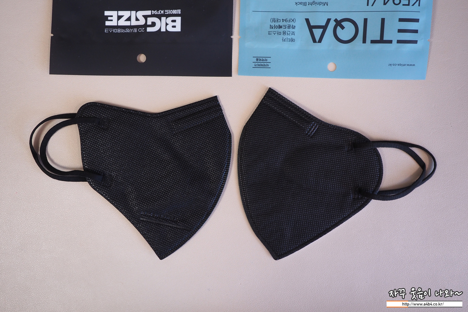 두 제품을 비교하는 부직포 면적은 동일하고 오히려 귀걸이끈 부분은 더 짧은 상태네요. 새로 만든 빅사이즈 마스크가 아닌 기존 대형사이즈 마스크 패키지명만 변경한 것으로 생각됩니다. T.T