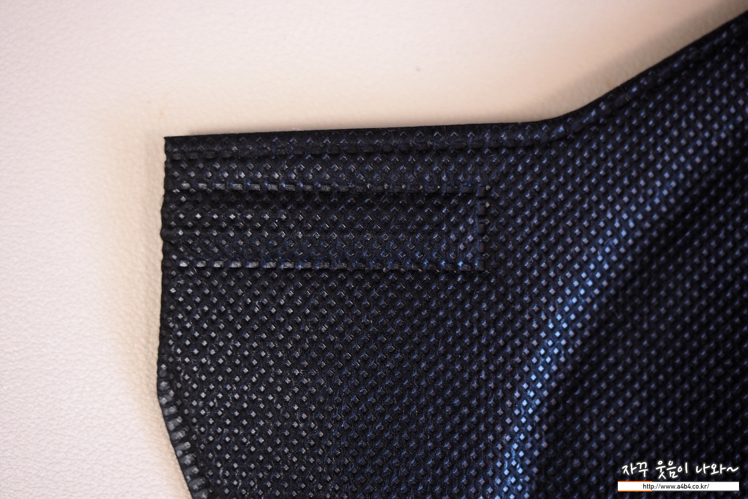 새부리형 힐메이드 마스크 내피는 드라이한 촉감의 부직포가 사용되었습니다. 내피에 보풀이 조금 보이지만 하루종일 마스크를 사용해되 간지럽거나 가려운 피부프러블 문제는 경험하지 못했습니다.