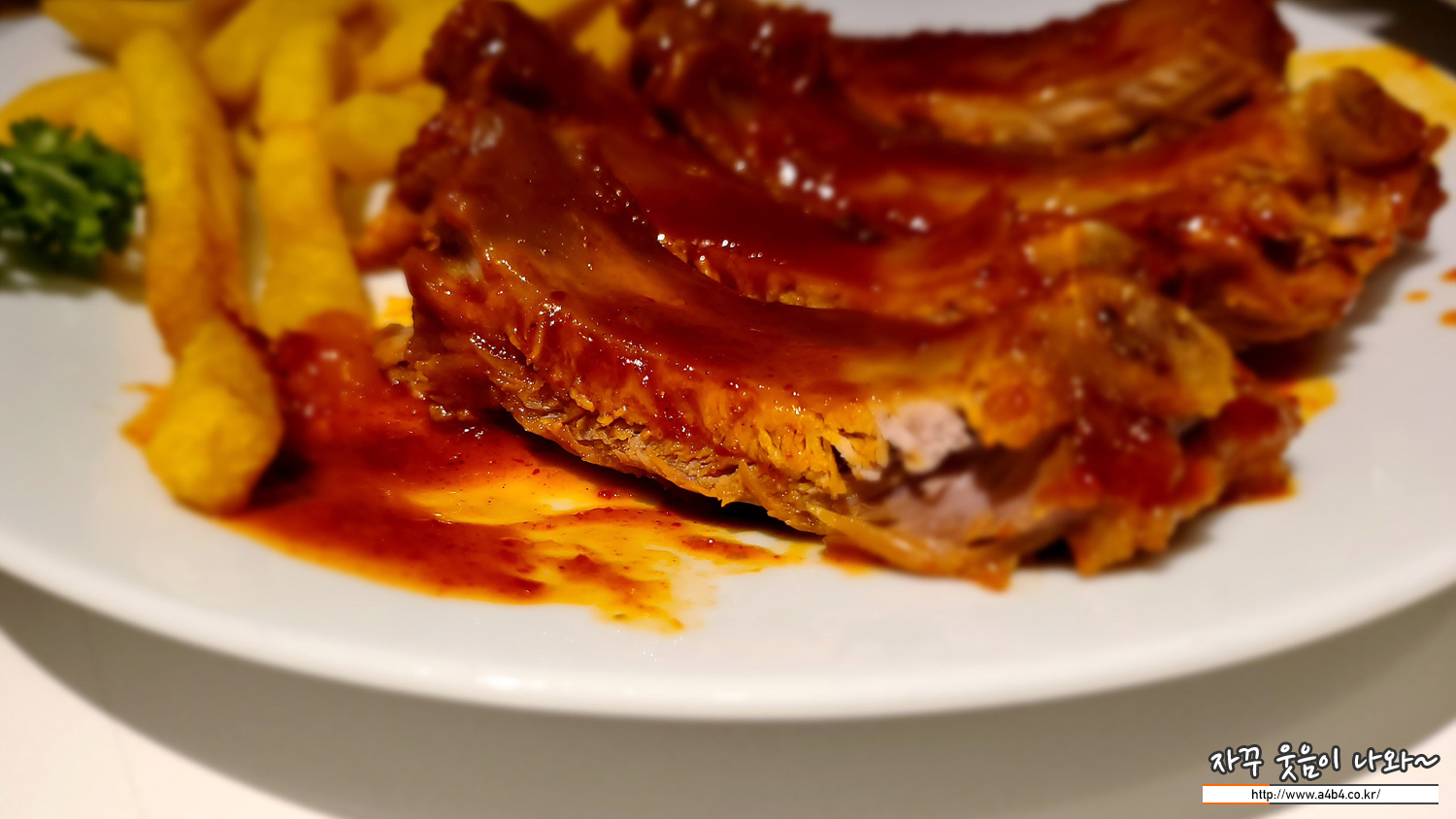 폭립과 감자튀김이 같이 나오는 메뉴입니다.