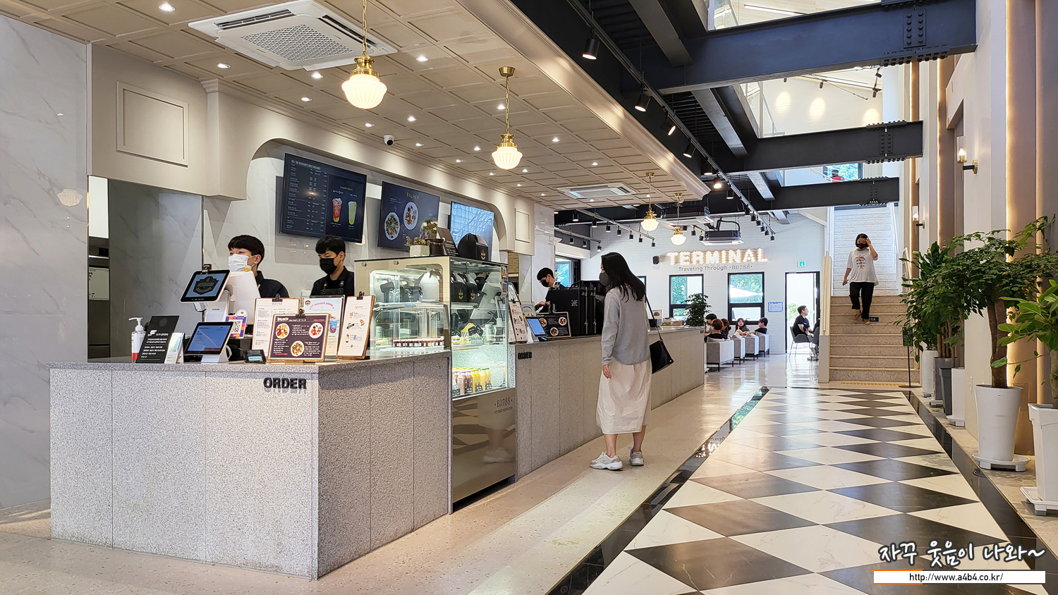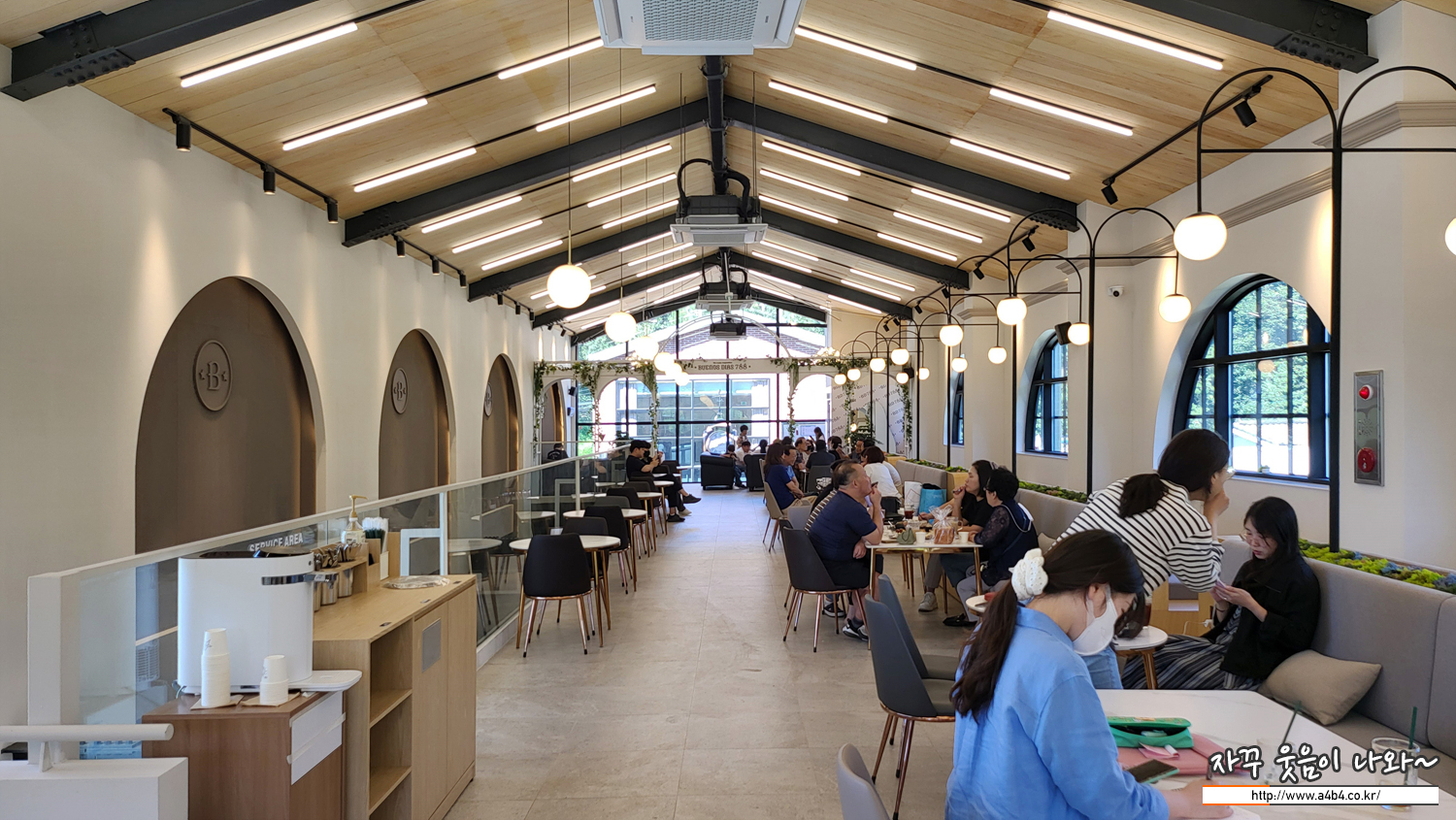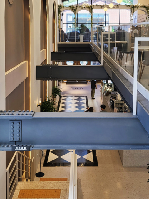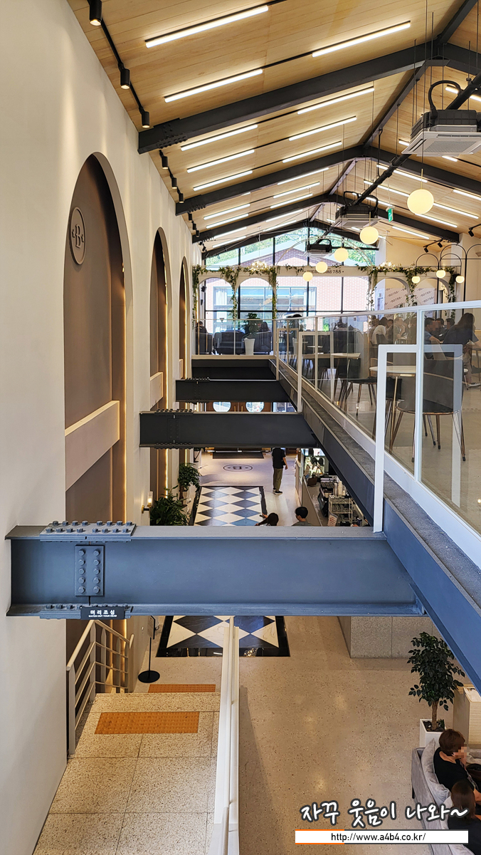 이곳 비디788 베이커리카페는 터미널의 콘셉으로 구성되어 있습니다. 비행기 터미널 보다는 큰 열차 터미널이 생각나는 H빔이 노출된 구조를 보여줍니다.