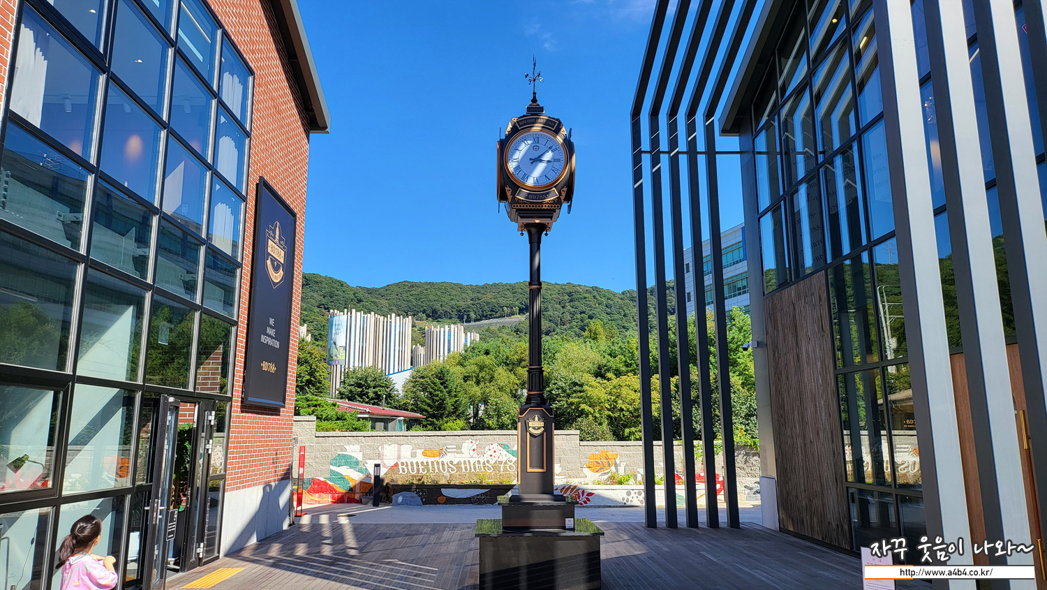 야탑 베이커리카페 맛집인 bd788은 시계탑을 기준으로 두 개의 건물이 위치해 있습니다. 건물 왼쪽은 화장실과 단체룸이 오른쪽에는 일반 방문객이 이용할 수 있는 2층 카페가 있습니다.