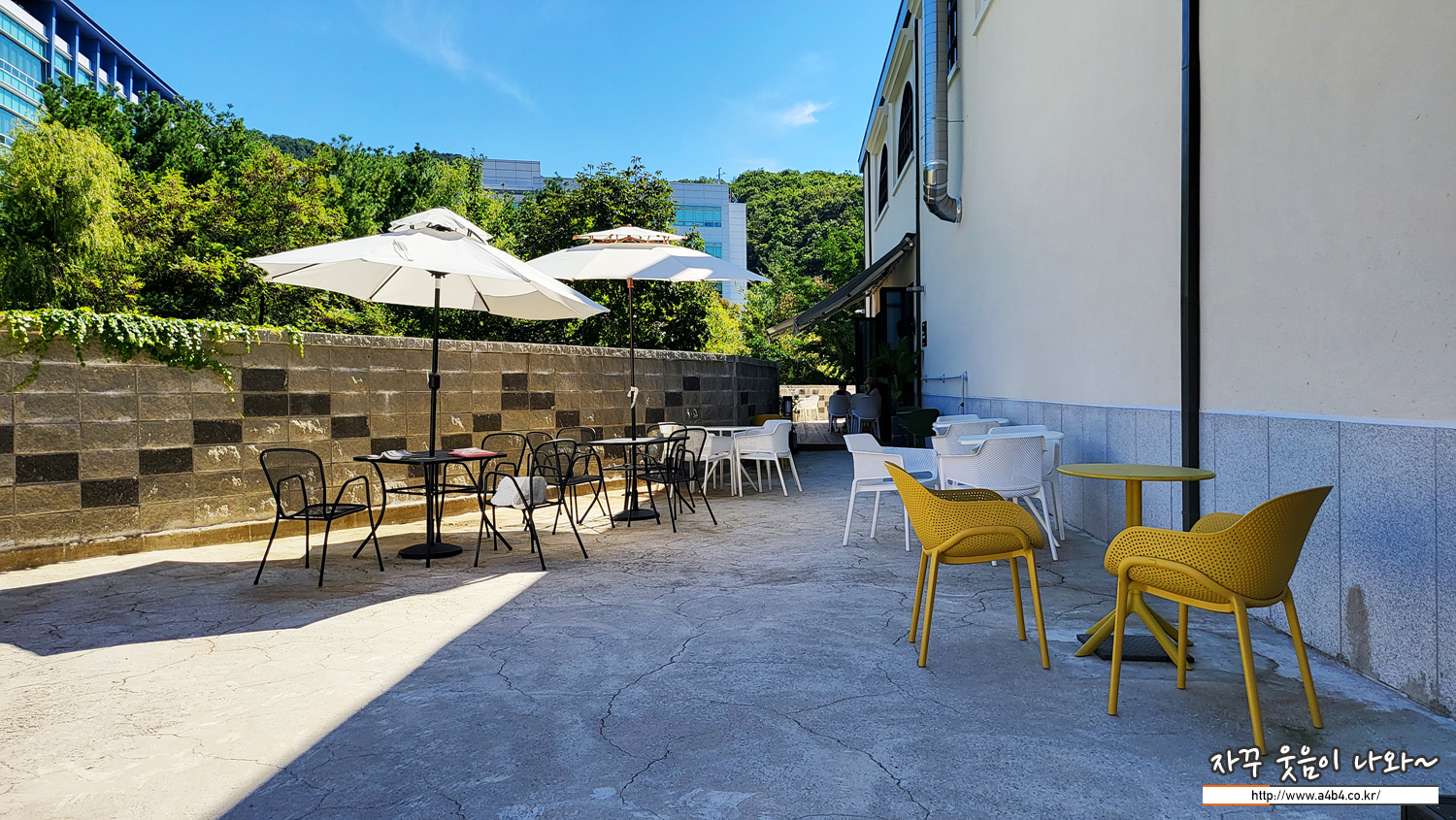 1층에는 실내 테이블과 함께 야외에도 테이블이 준비되어 있습니다. 더운 여름에는 이용이 어렵겠지만 봄이나 가을에는 아외에서 따뜻한 바람 맞으면서 여유있는 시간을 만나보고 싶네요.