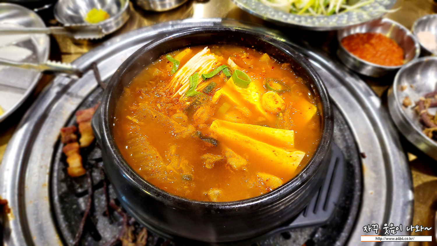 후식은 김치찌개를 주문했는데, 양이 어마어마 합니다. 1인분만 주문하셔도 여럿이 먹기에 충분해 보입니다.
