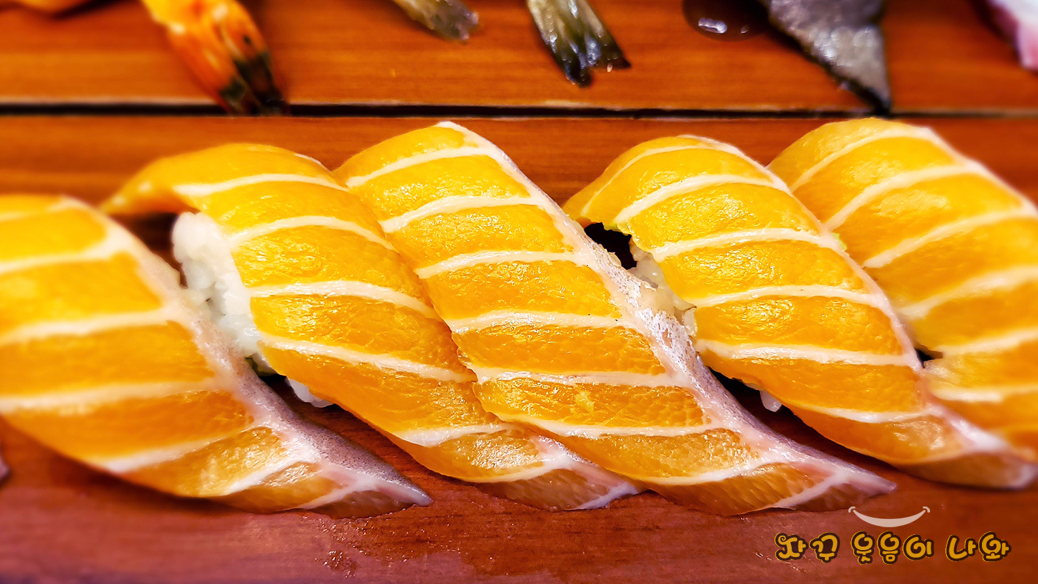 연어초밥과 광어초밥은 가장 보편적인 초밥이고 마트 등에서도 저겸한 가격에 만날 수 있는 초밥인데요. 마트에서 구입할 수 있는 초밥 정도의 가격에 맛이나 식감, 회 신선도는 훨 졸습니다.