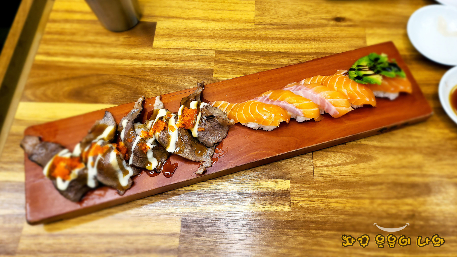 저희는 연어 & 꽃등심불초밥 주문합니다.