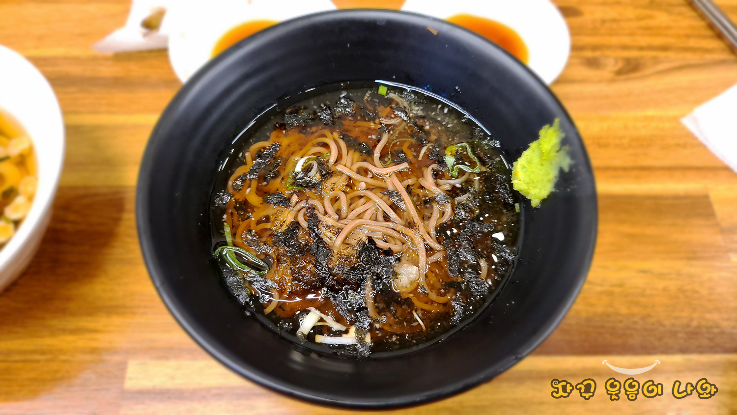 초밥을 주문하면 서비스로 나오는 우동 or 모밀국수 입니다. 둘 중 하나 선택할 수 있고요.