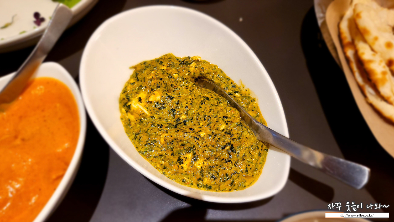 시금치와 칠리 등이 향신료가 들어간 커리입니다. 저에게는 상당히 매력적인 맛을 보여주는 커리인데, 비쥬얼은 조금 그러합니다. 이 모양 때문에 호불호가 나뉘는..