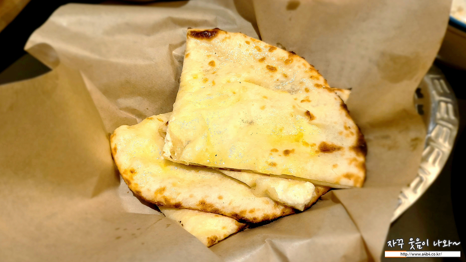 커티즈 치즈를 넣어 구운 인도식 전통 빵입니다. 맛은 있었지만 가격이 상대적으로 높았던 것으로 기억하네요.