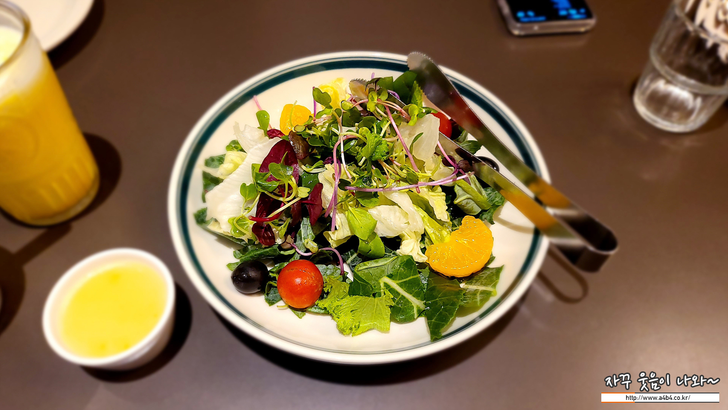 하우스 샐러드와 드레싱이 나오고요. 맛은 쏘쏘...