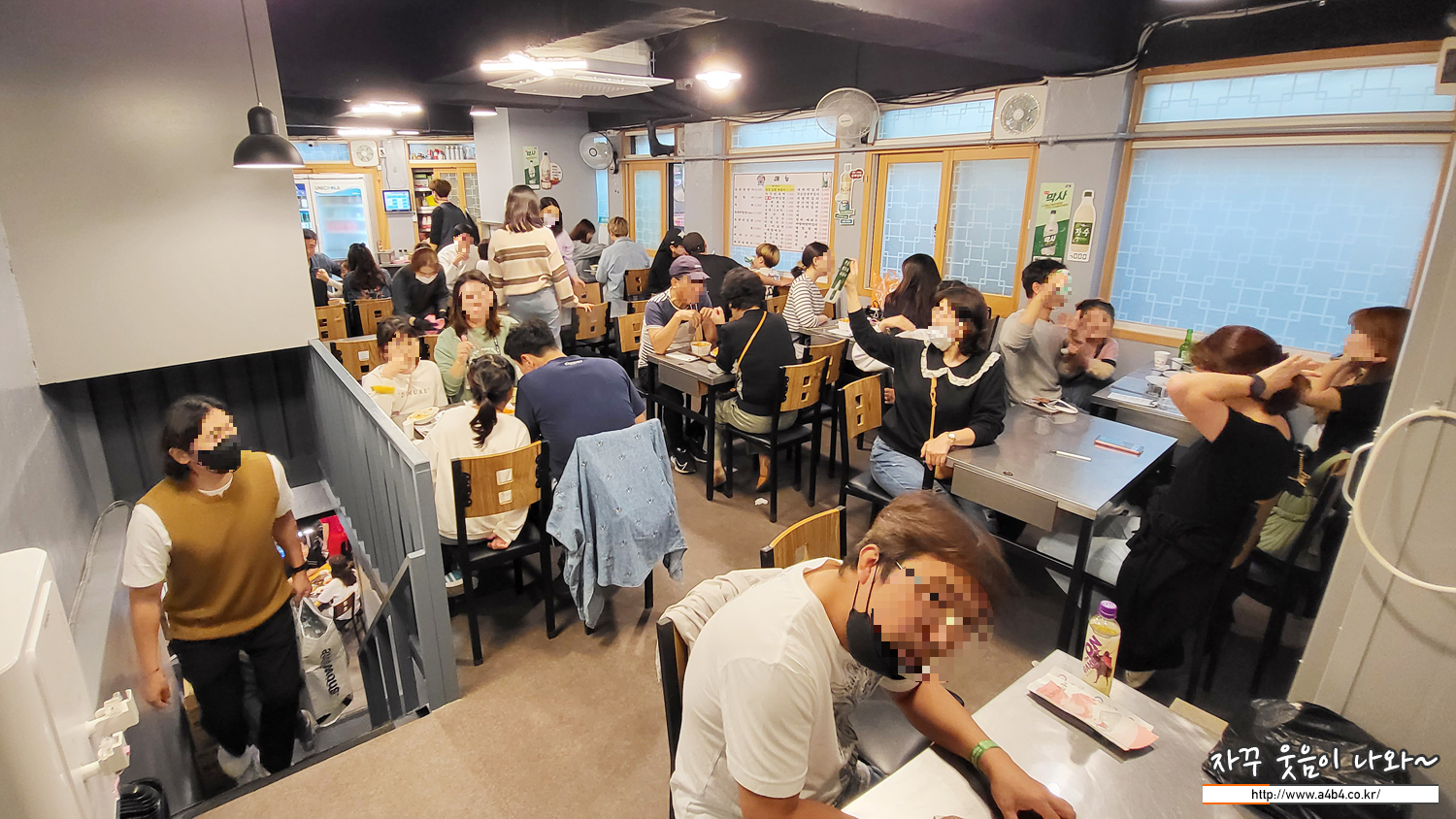 잠간의 대기후에 모녀김밥으로 입장합니다. 이미 1층은 만원이고 2층으로 안내받았습니다. 게단을 올라가니 2층에도 좌석이 있네요. 역시나 이곳도 사람들이 바글바글... 사장님 좋으시겠다!