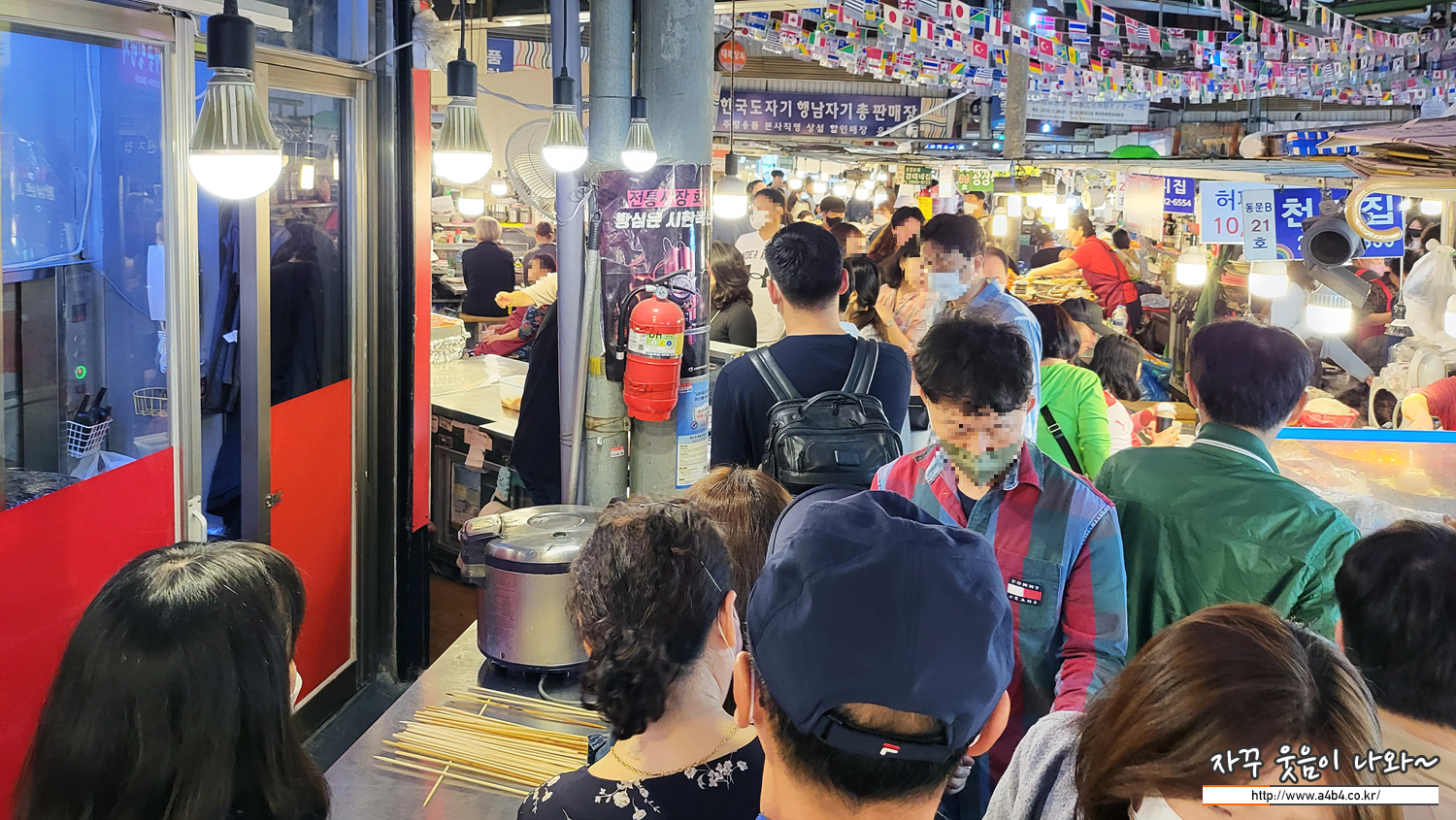 광장시장 안쪽으로 들어오니 정말로 사람들 머리만 보입니다. 주말 오후 사람들에게 밀려 다닙니다. 길에 서 있을 수 없을 정도!!!
