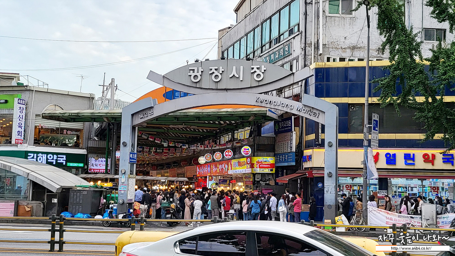 저희는 광장시장 노상주차장에 주차 실패하고 종묘공영주차장에 주차하고 광장시장으로 이동했습니다. 길 건너편에서부터 보이는 광장시장 맛집 엄청나게 긴 줄... 발걸음이 빨라 집니다.