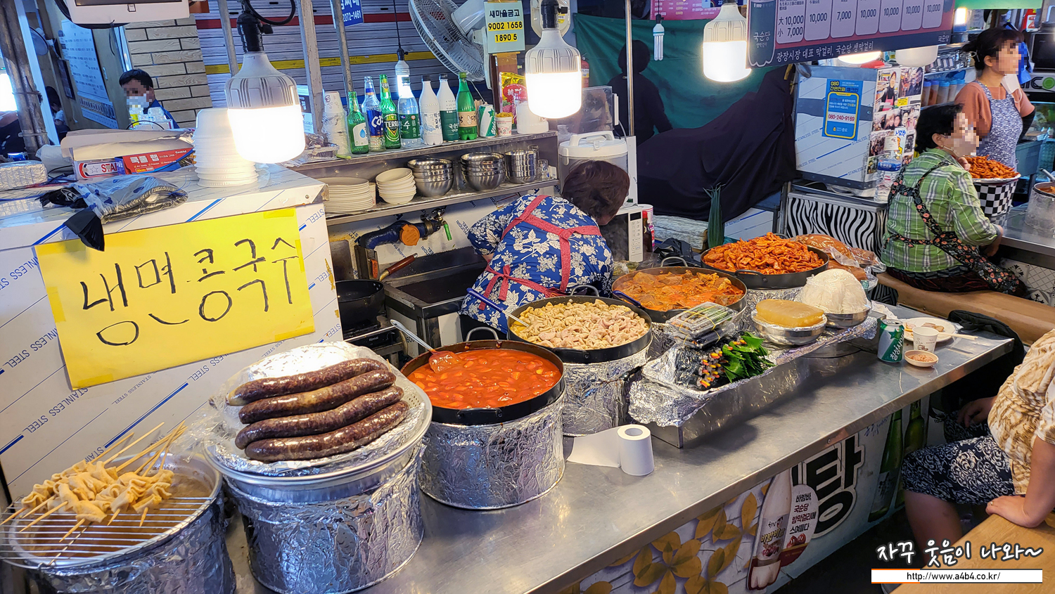 입구에서도 계속 김밥을 만들고 녹두전을 부치고 있으시네요. 그냥 자동으로 몸이 끌린다는...